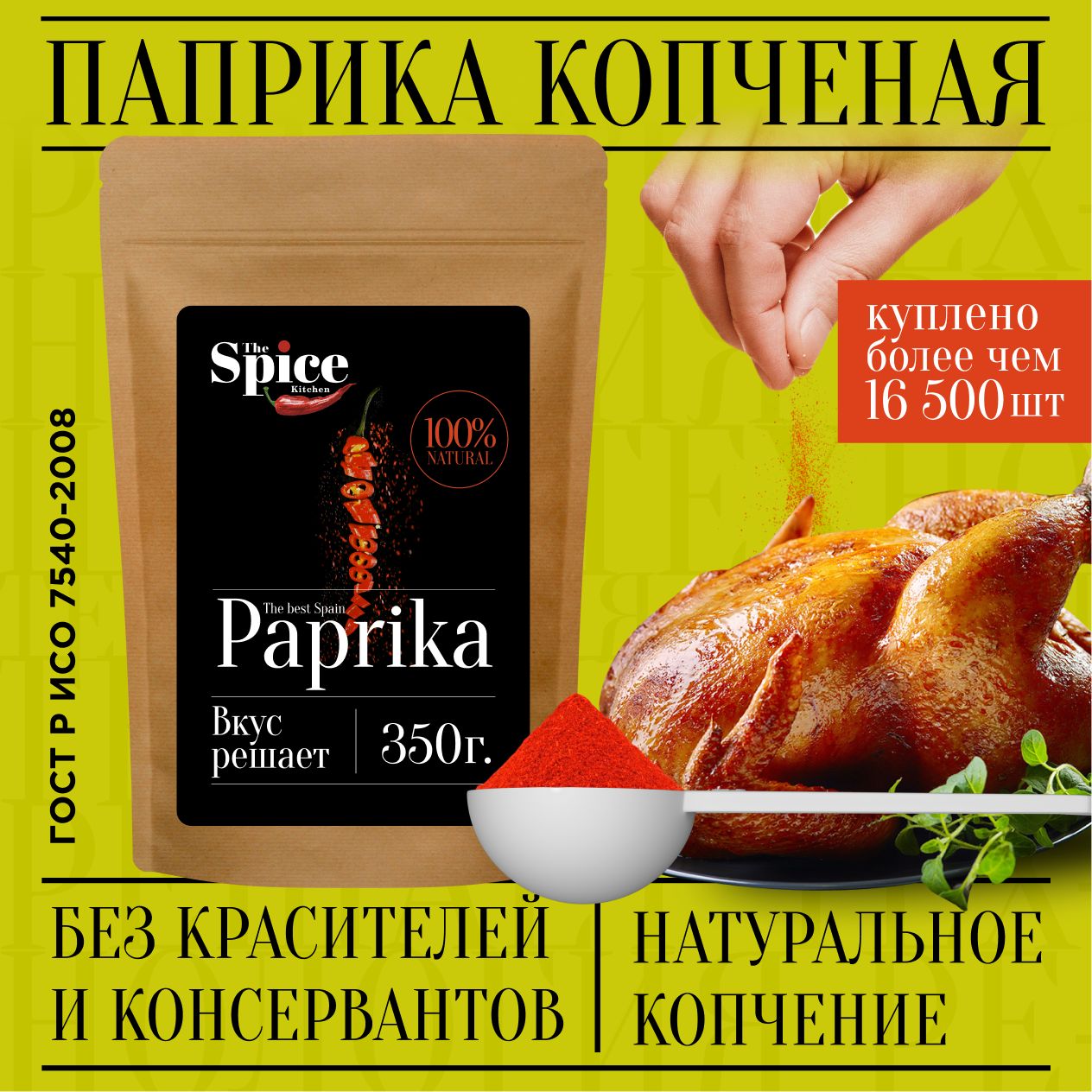 Паприка копченая молотая настоящая 350 грамм универсальная вегетарианская специя (приправа) для курицы, первых вторых мясных и рыбных блюд, супа, борща, плова, мяса, шашлыка колбасок