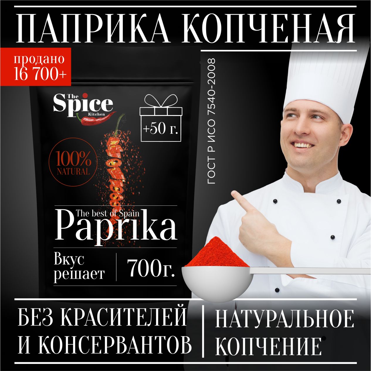 Паприка копченая молотая настоящая 750 грамм универсальная вегетарианская специя (приправа) для курицы, первых вторых мясных и рыбных блюд, супа, борща, плова, мяса, шашлыка колбасок