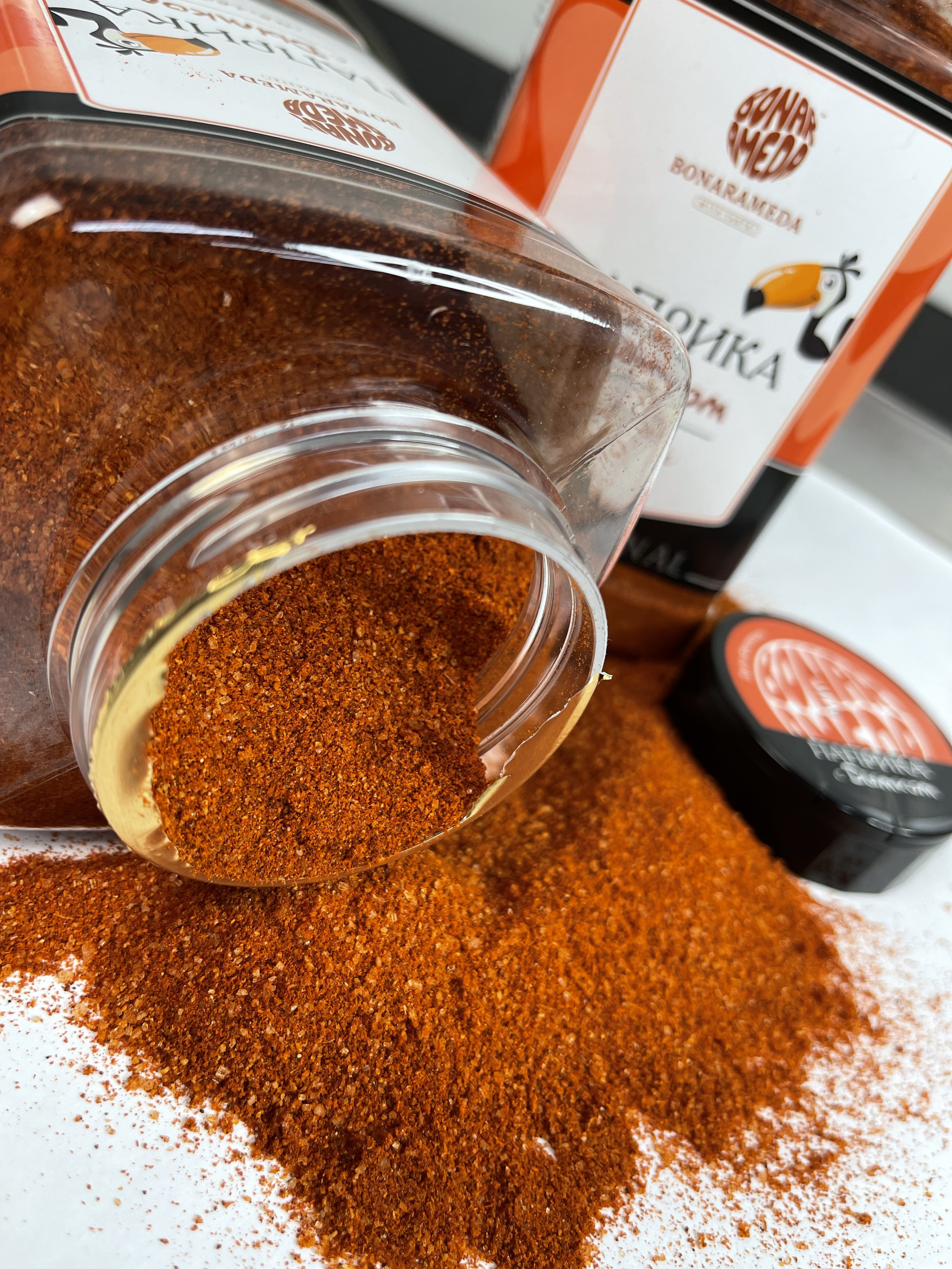 перец красный молотый, паприка, сахар, чеснок, аромат дыма (натуральный), соль морская.