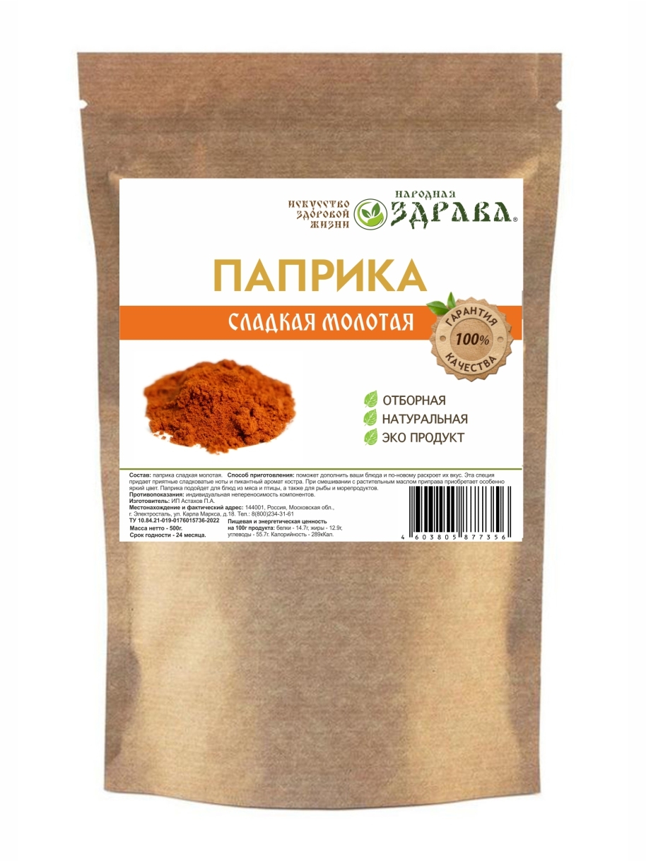 Паприка сладкая молотая 500г. Народная Здрава