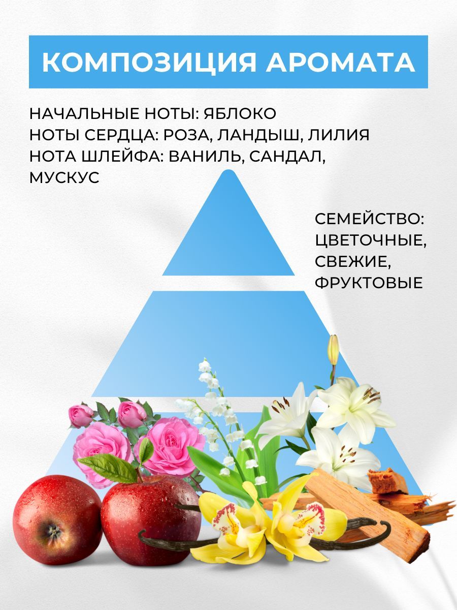 Базовые ноты: Восточные ноты, ваниль, сандаловое дерево, мускус и влажные лепестки лилии очаруют вас, и вы возродитесь благодаря динамичности мягкой ванили в базовых нотах.