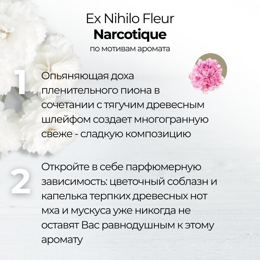 GAMMA N 09.03 представлен ароматом унисекс Ex Nihilo Fleur Narcotique. Сочные ноты бергамота, спелого персика и ароматного личи переплетаются с изумительными бутонами пиона и цветов апельсинового дерева. Свеже-сладкий цветочный аромат подчеркивается нотами горького дубового мха и соблазнительного мускуса. Откройте в себе парфюмерную зависимость.