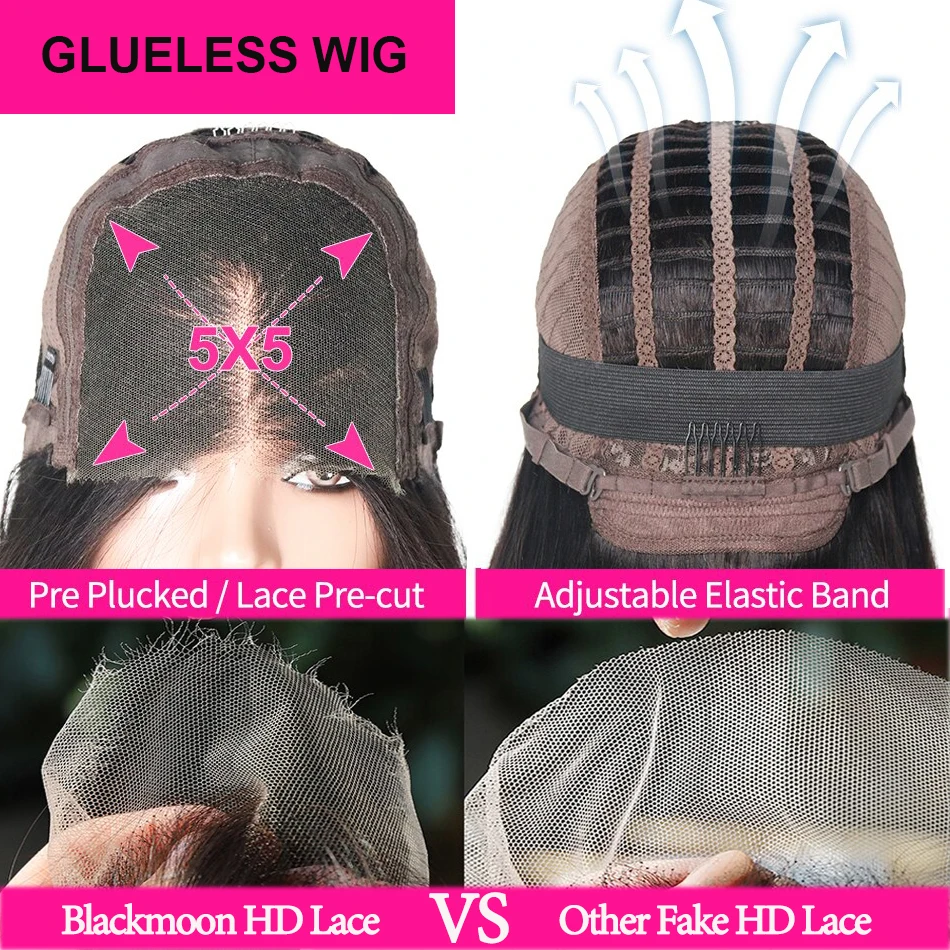 Парик без клея, готовый к ношению, парик с прямыми волосами 5 Х5 HD, парик с застежкой на сетке, предварительно выщипанные бразильские волосы, парики для женщин, предварительно вырезанный парик