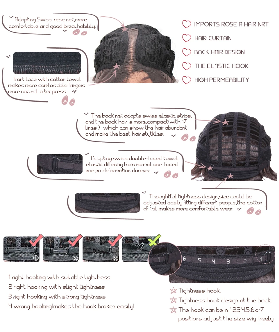 2. Материал волос: высокотемпературное волокно. Термостойкий. Синтетический Т-образный шнурок спереди