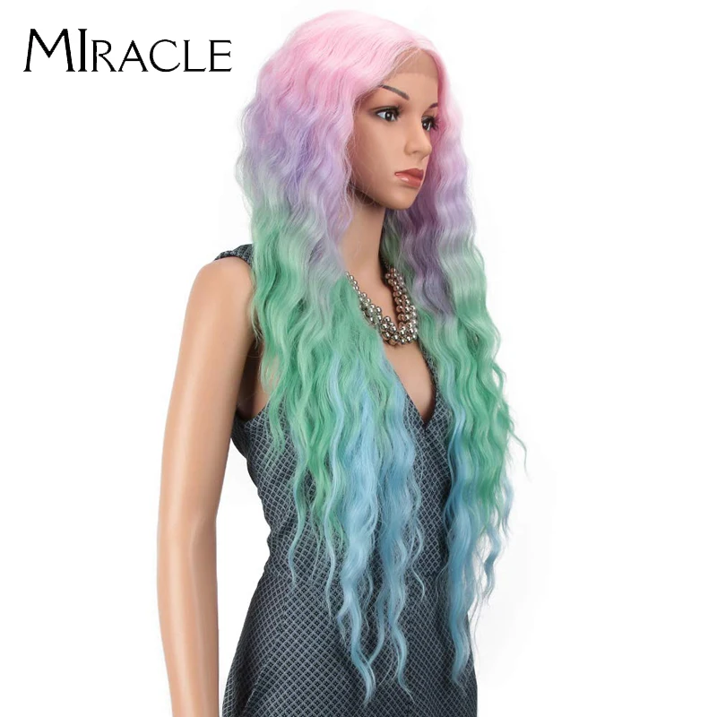 1.ЧудоПарик платиновый блонд с длинными волосами 30 дюймов, волнистый, средней и глубокой частью, Омбре, высокотемпературное волокно, синтетический парик на фронтальной сетке для женщин
