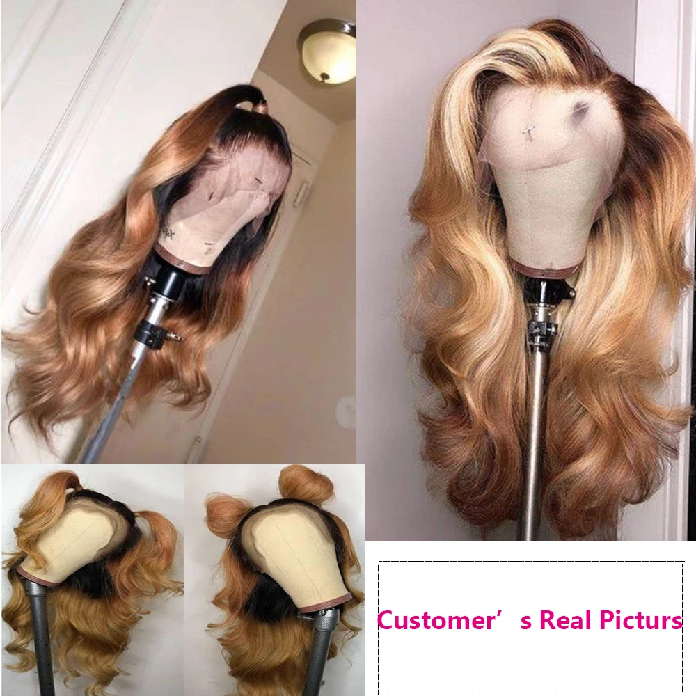 Объемная волна, блонд, кружевной передний парик, человеческие волосы, кружевные передние парики, 30 дюймов, цветной парик, темные корни, блонд, парик, человеческие волосы, Hd, бесклеевой парик