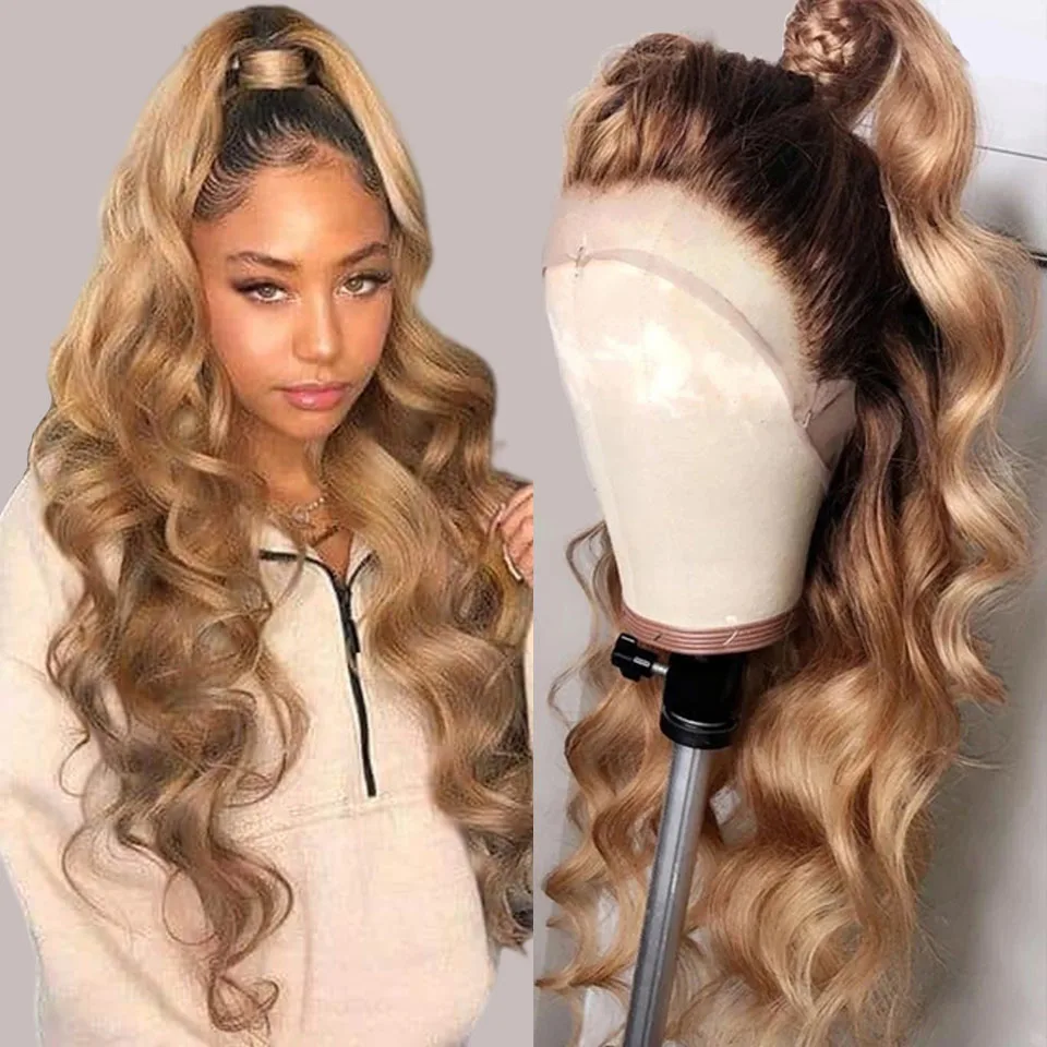 Wig Type Honey Blonde Body Wave Lace Front Human Hair Wigs