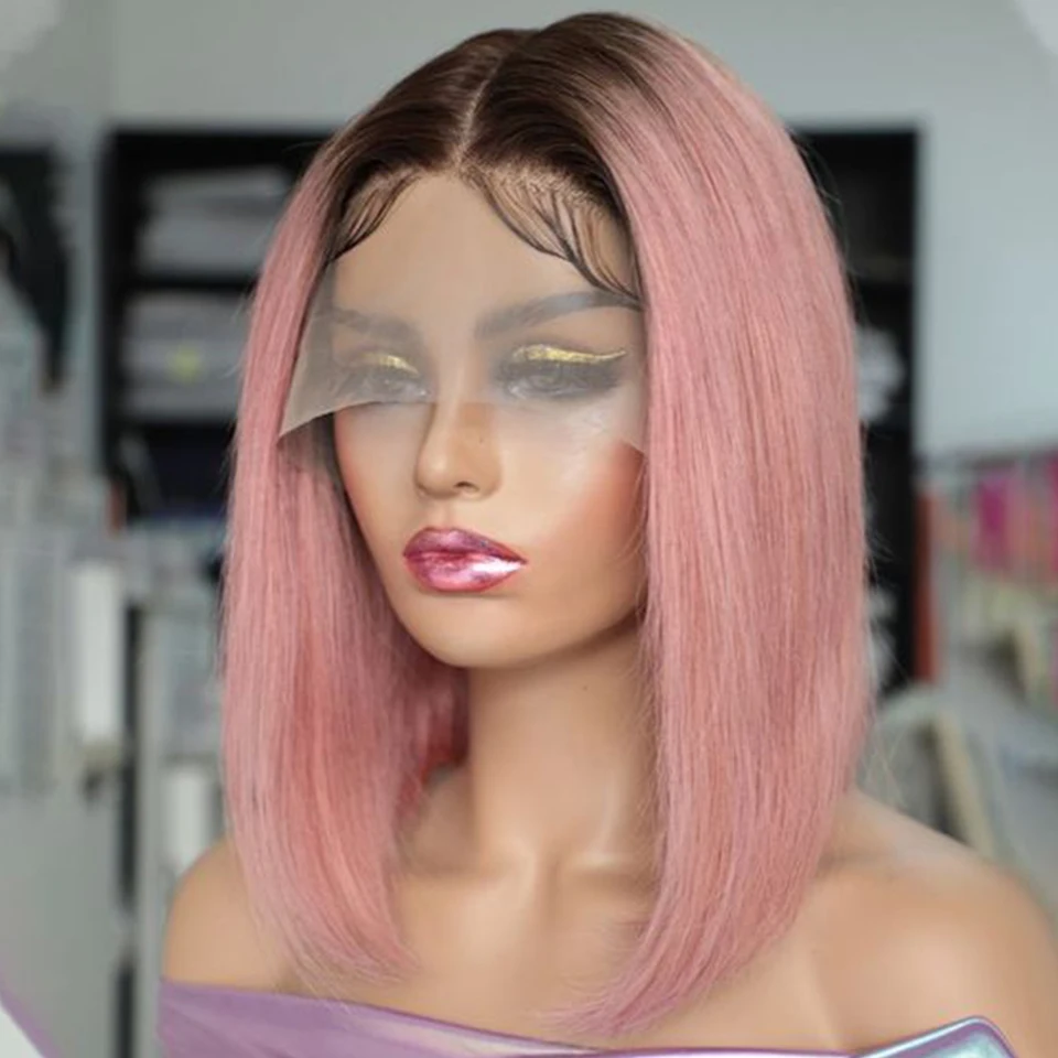 Парик с розовым Бобом, шелковистые прямые парики на сетке спереди, парики для женщин, короткий прозрачный парик на сетке, отбеленные узлы, предварительно выщипанный розовый