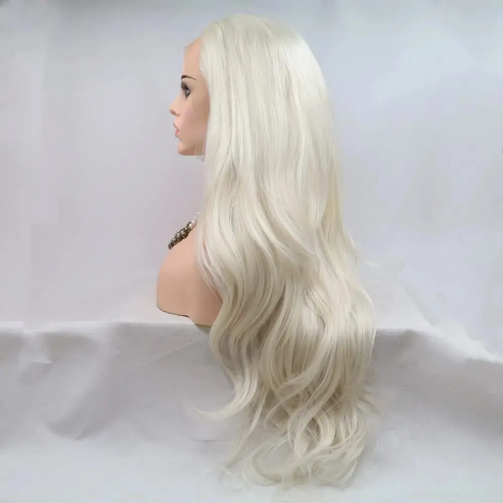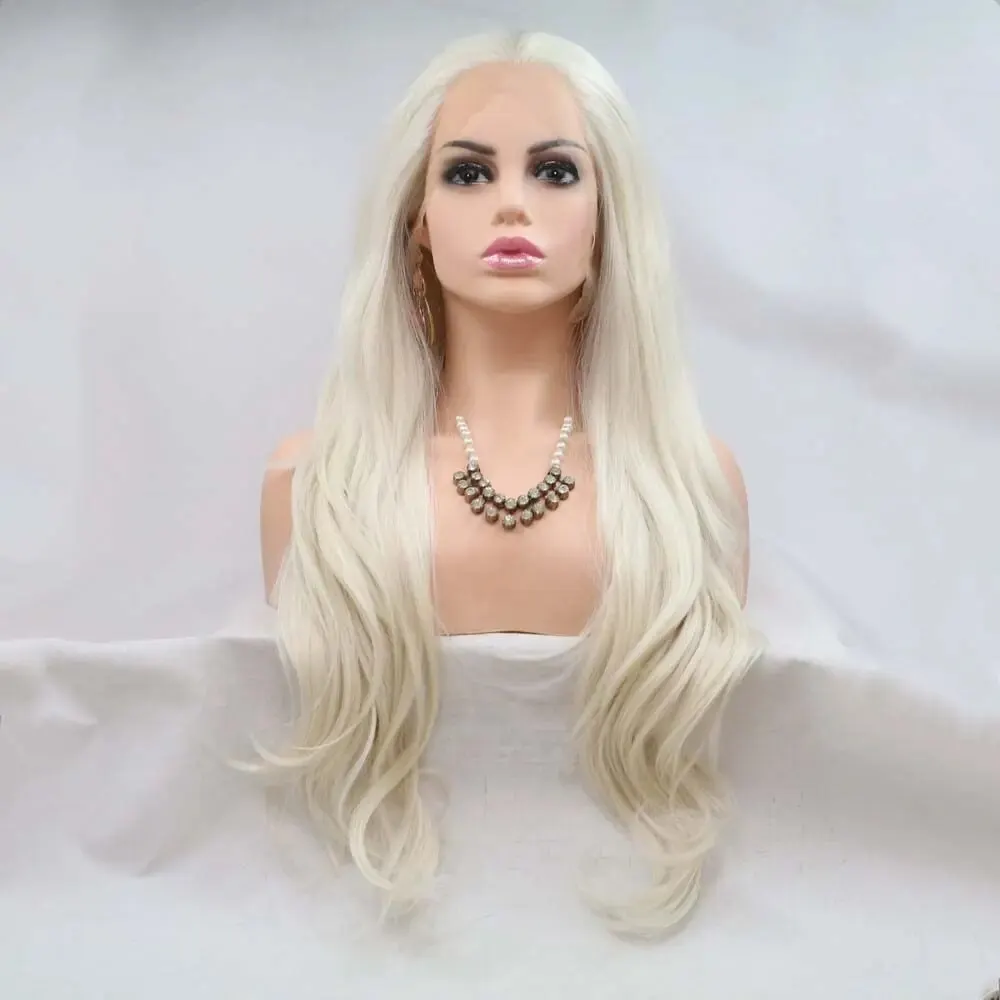 Парик серебристый/светлый/платиновый 60 #, термостойкие длинные волнистые синтетические волосы со шнуровкой спереди, цвет белый/светлый