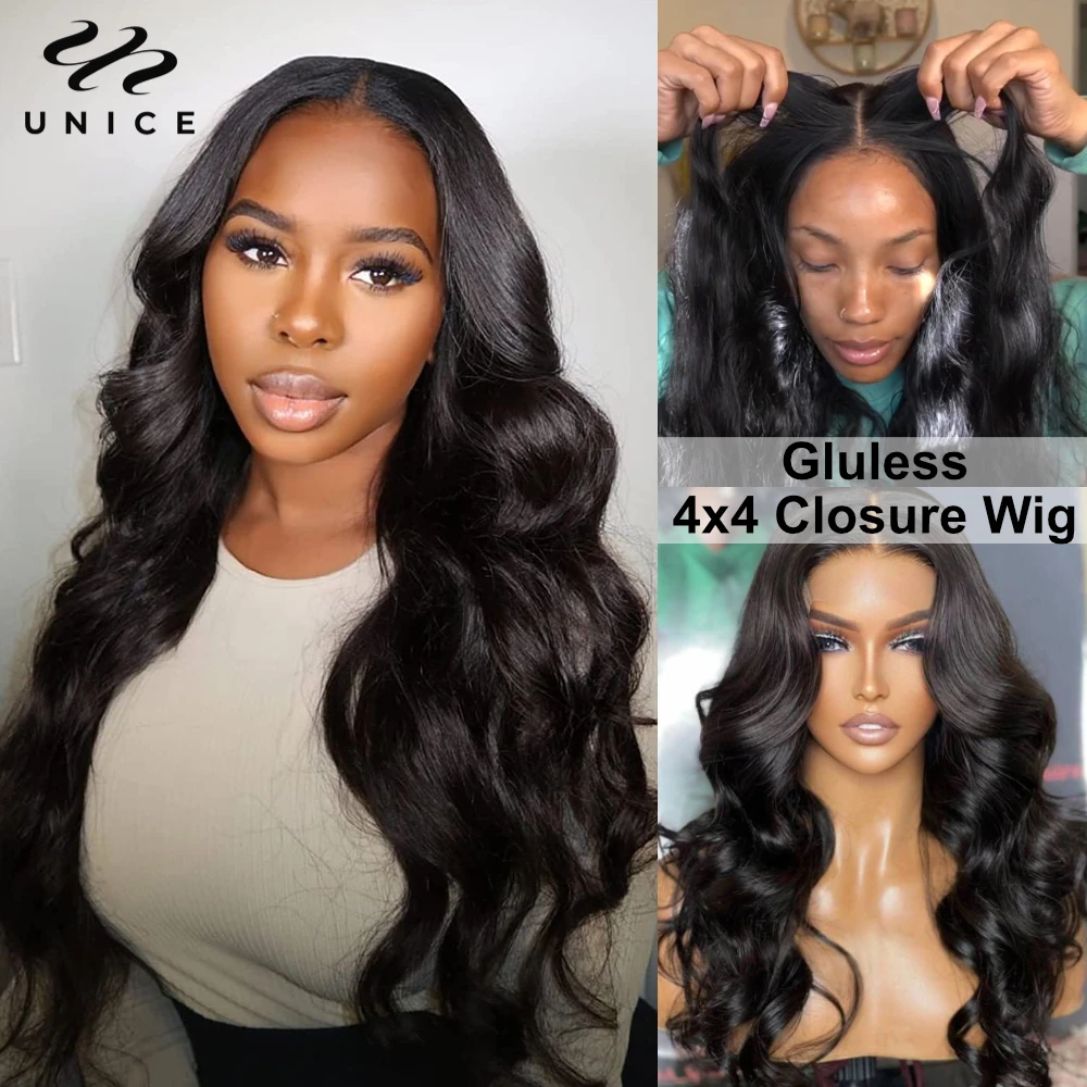 Парик Unice Air 6x4,5 больше, кружево, без клея, волнистые человеческие волосы 4x4, предварительно вырезанный парик на сетке, носить парик, парик без косточек для женщин