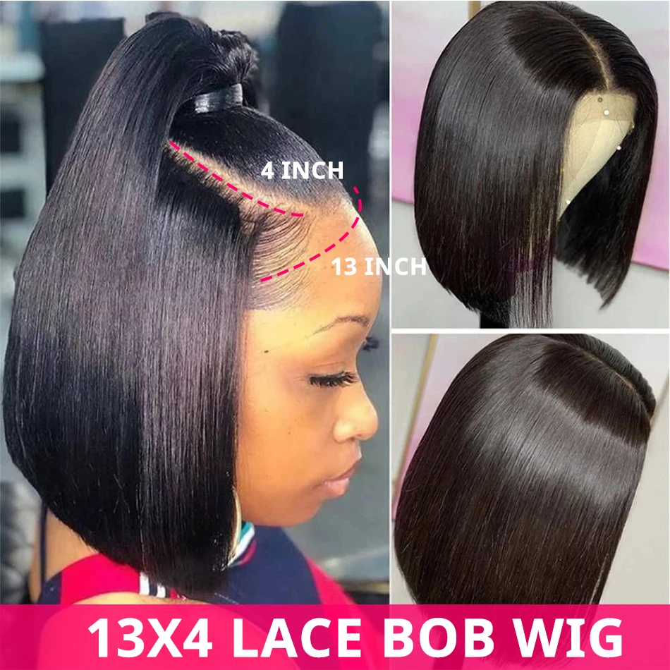 13х4 короткие парики с Бобом, кружевные передние человеческие волосы, парики для женщин, бразильские прямые человеческие волосы, парики с Т-образной частью, прозрачные кружевные передние парики