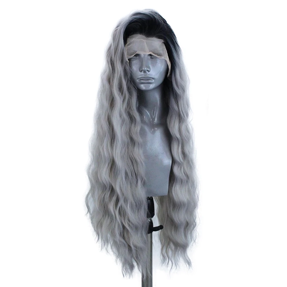Парики AIMEYA Женские синтетические, фронтальные из черного/серого синтетического волокна, с волнистыми волосами, для косплея, высокотемпературные синтетические