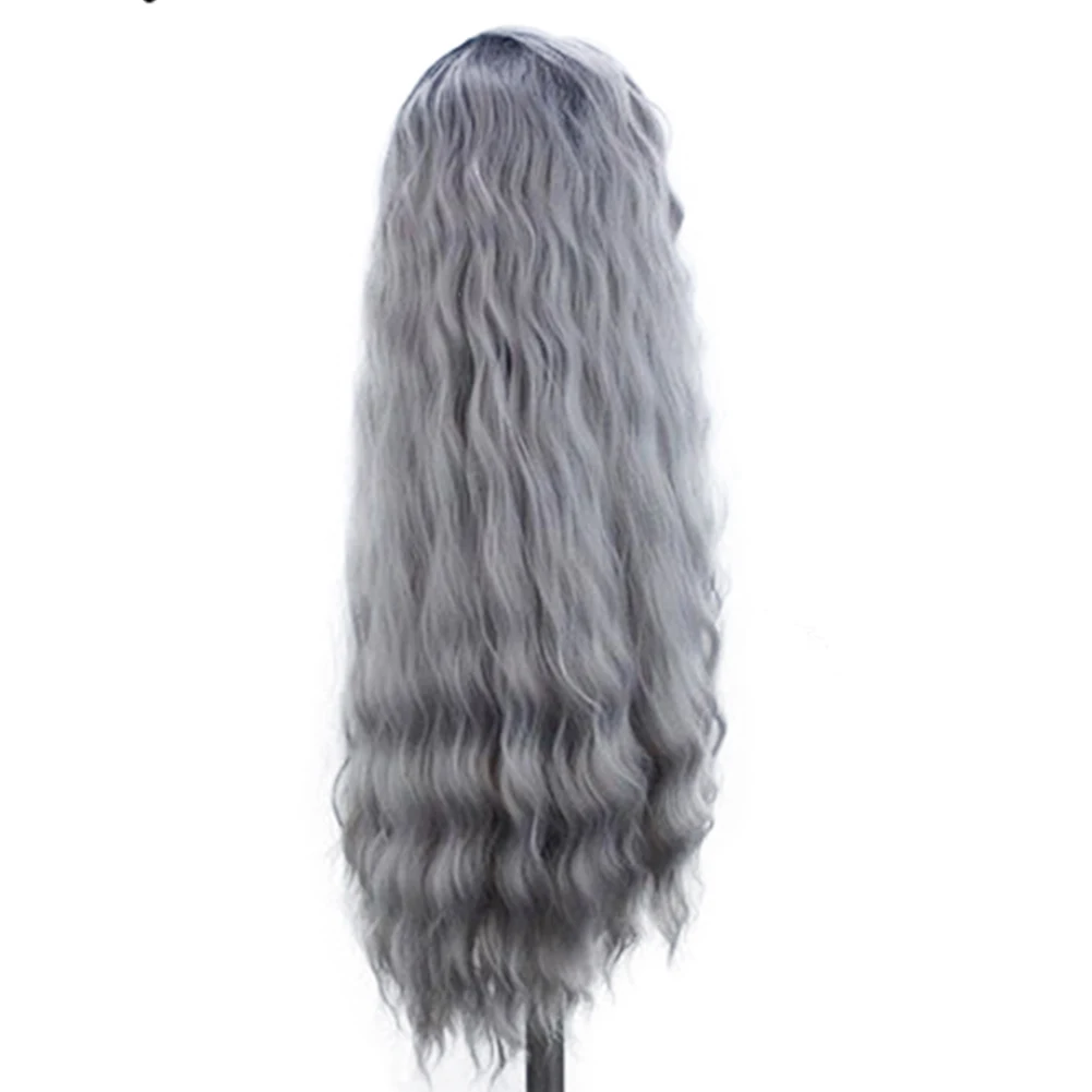 AIMEYA Ombre Grey Synthetic Wigs For Black Women Long Natural Wave Lace Wig Free Part Cosplay Wig High Temperature Fiber Wigs