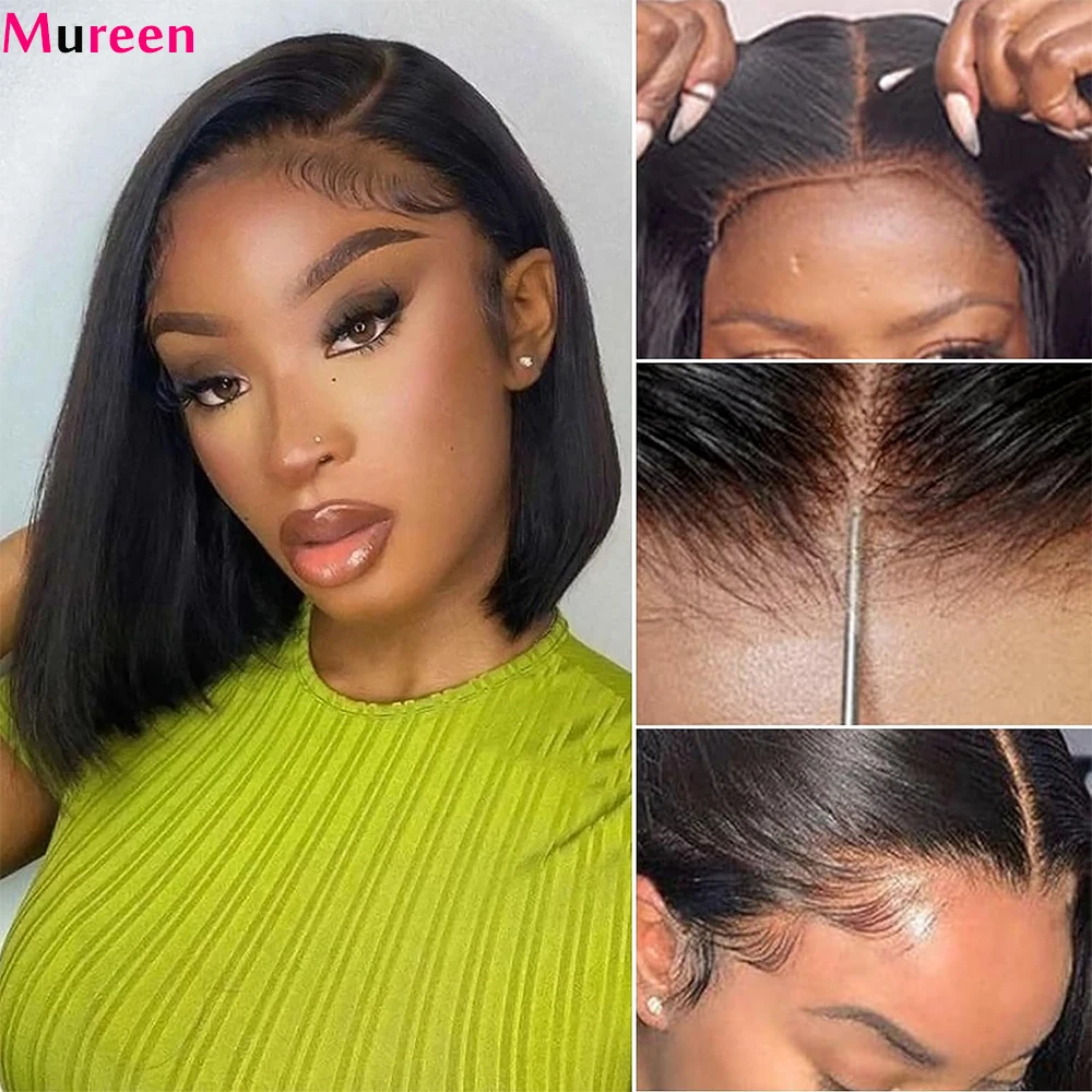 Носите And Go Бесклеевые парики из человеческих волос Прямые парики Боб для женщин Готовые к работе 4x4 Предварительно вырезанный парик с застежкой на шнурке Материал человеческих волос:100% гарантия человеческих волос