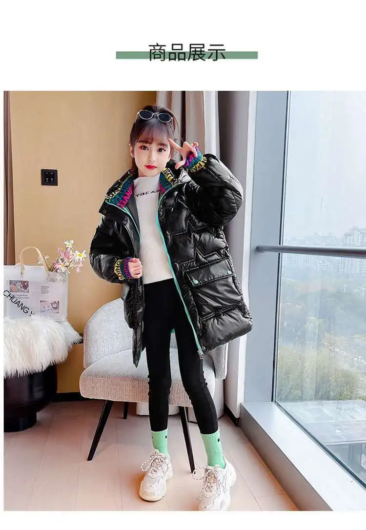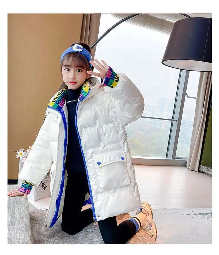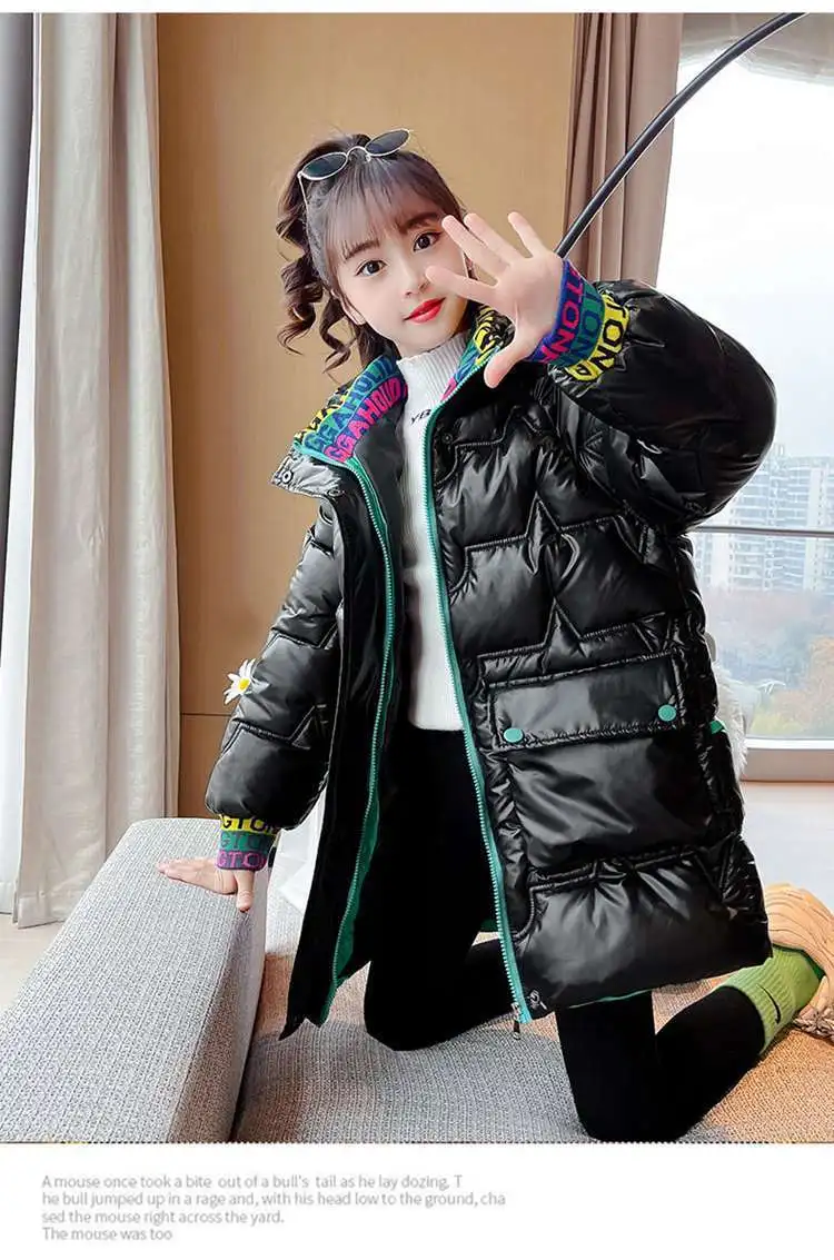 Парка для девочек, новинка 2022, зимнее пальто с капюшоном и большим меховым воротником, теплые стеганые куртки для девочек, толстая длинная хлопковая куртка