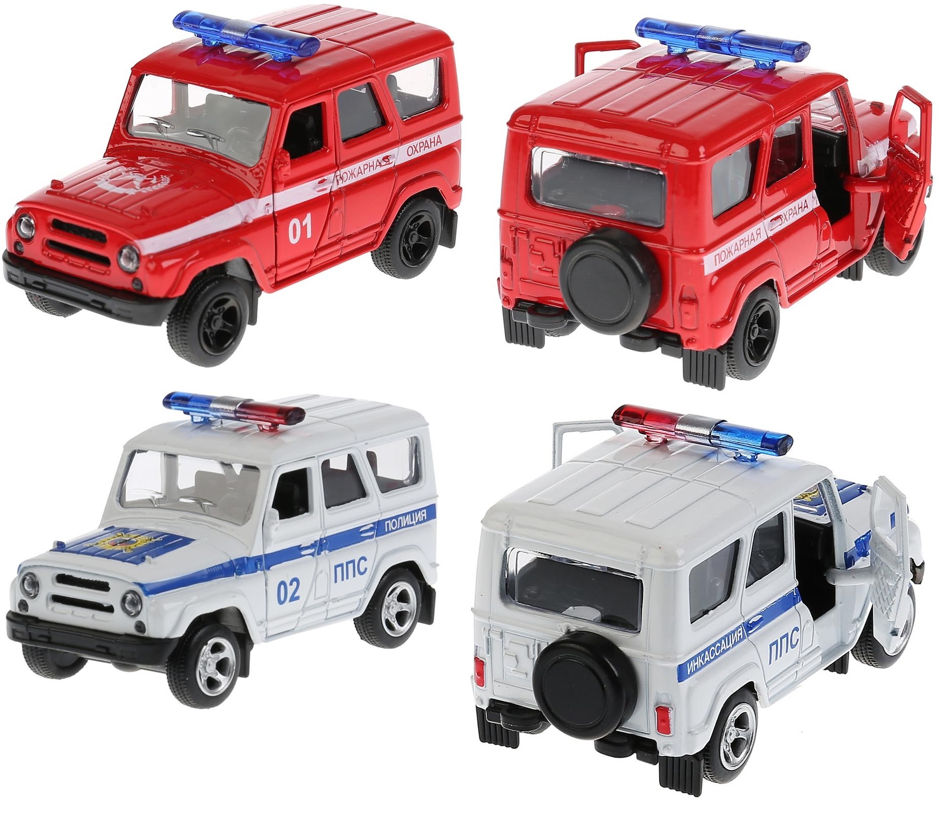 • 2 металлические инерционные машинки с открывающимися дверями