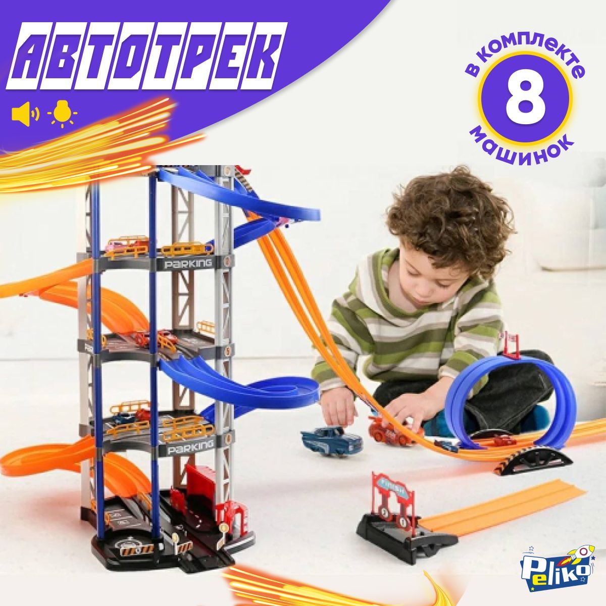 Парковка автотрек с 8 машинками / 5 этажей гараж паркинг для машин интерактивный со звуком, светом и музыкой