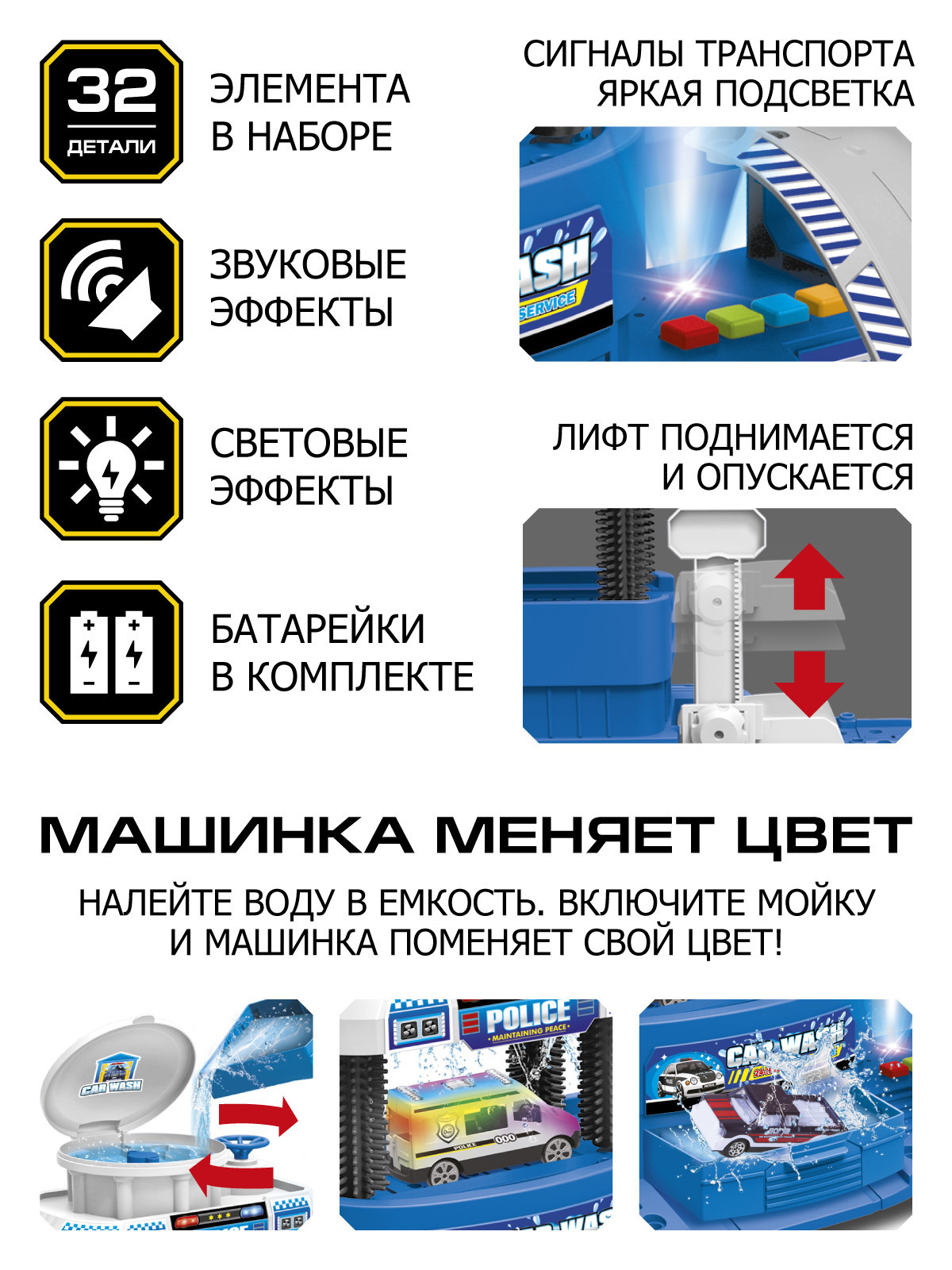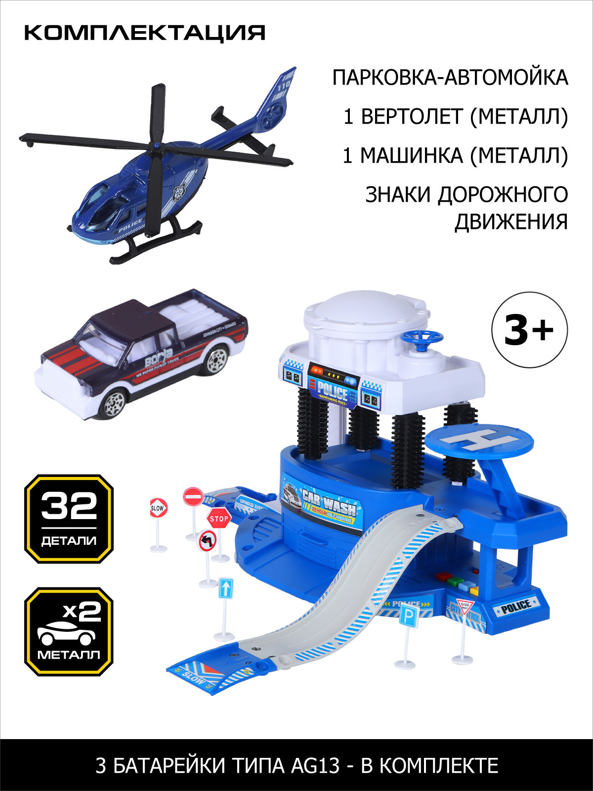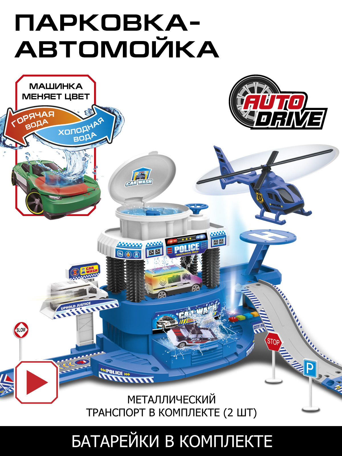 Описание: Парковка с автомойкой «Полиция» торговой марки AUTODRIVE - игрушка, от которой будет в восторге каждый ребенок!