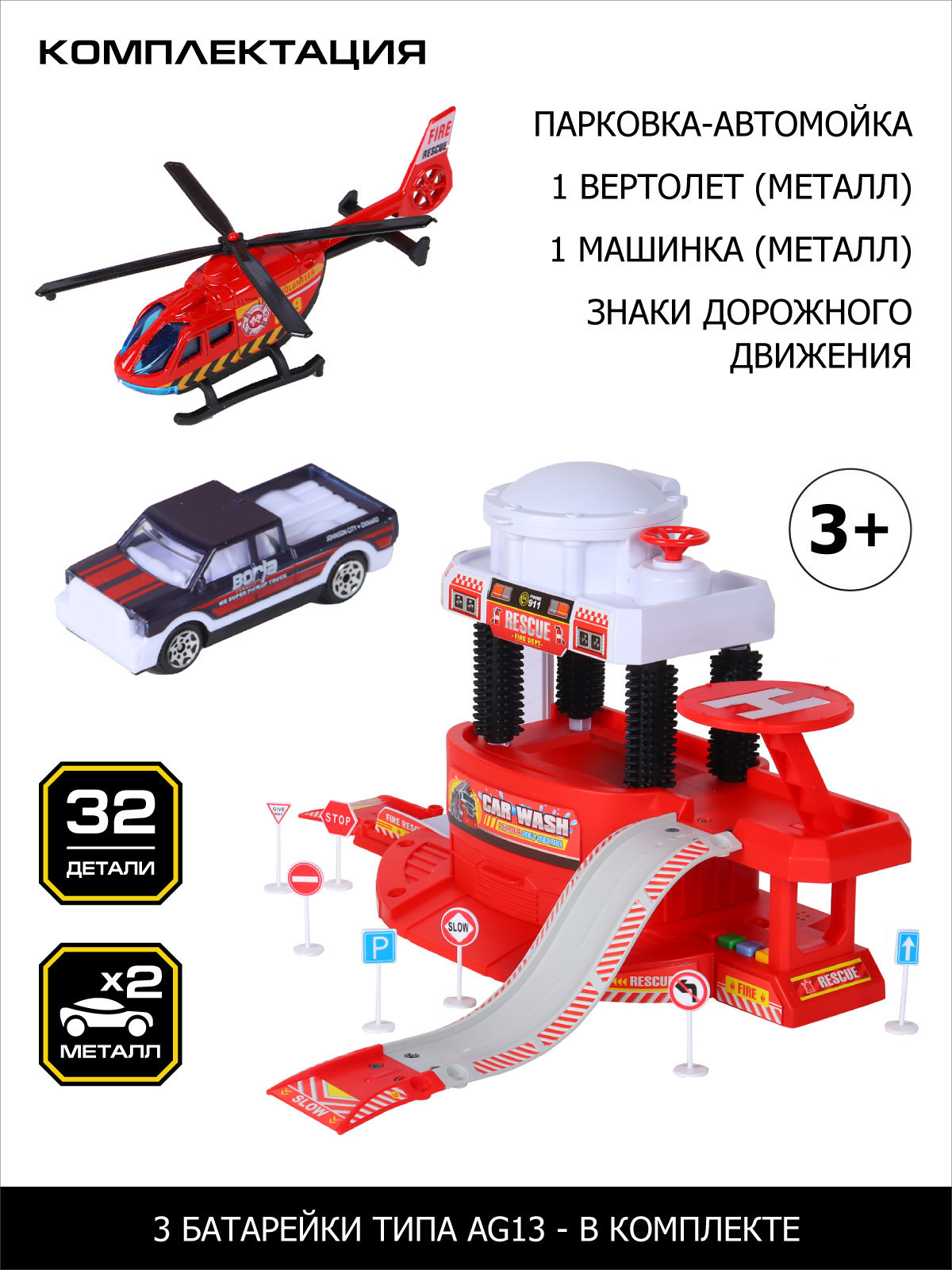 Комплектация: автомойка, машинка, вертолет