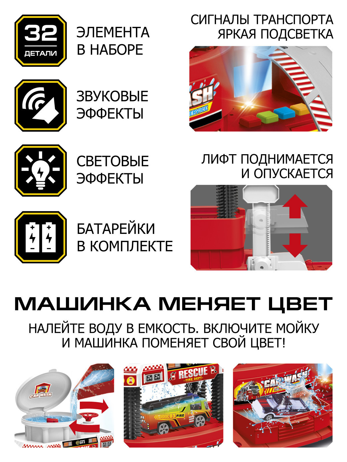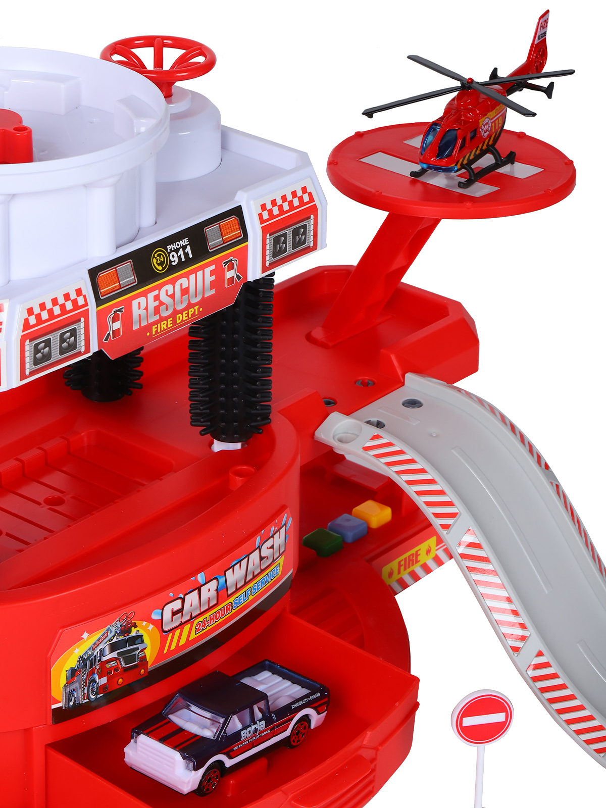 Описание: Парковка с автомойкой «Пожарная станция» торговой марки AUTODRIVE - игрушка, от которой будет в восторге каждый ребенок!