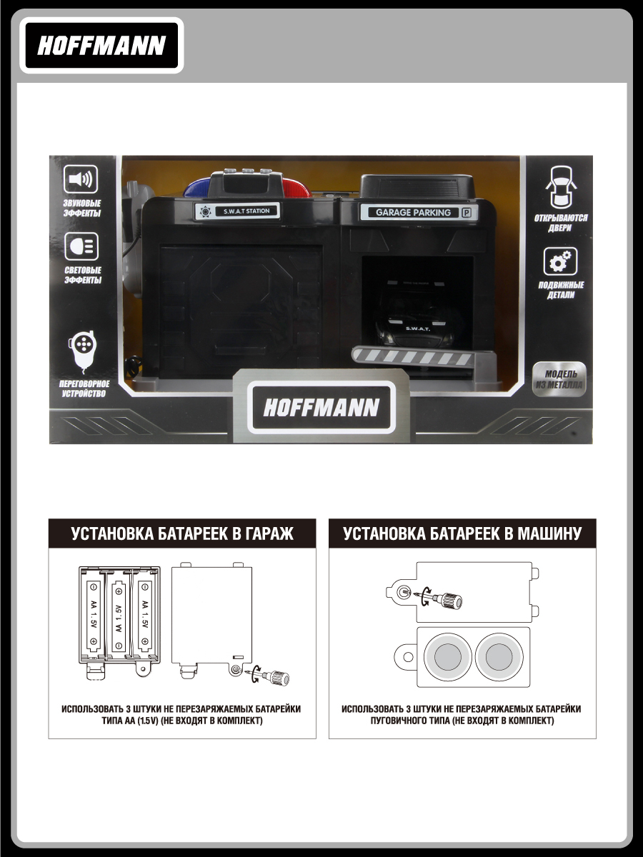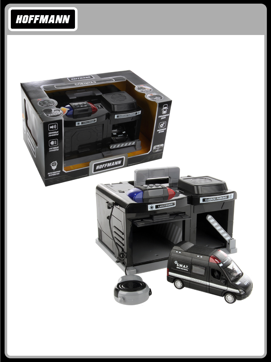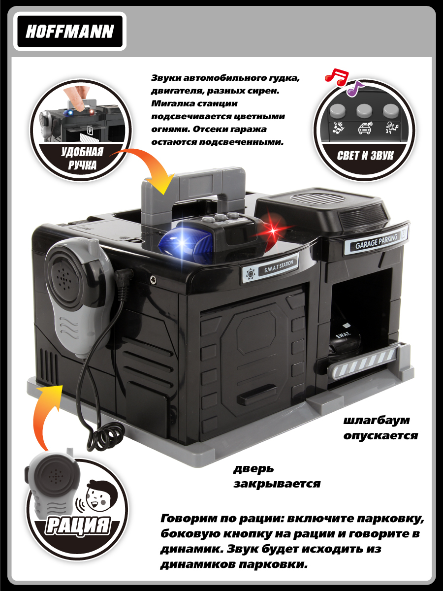 Парковка для машинок, Hoffmann / Гараж детский, игрушка / "SWAT" машинка, со светом, звуком и рацией