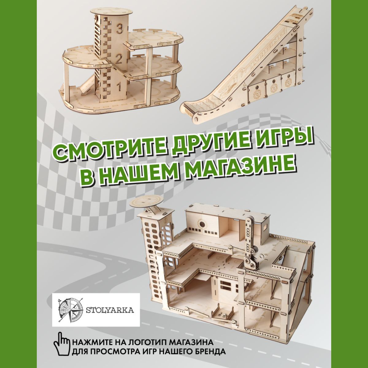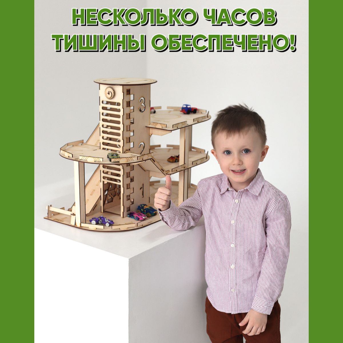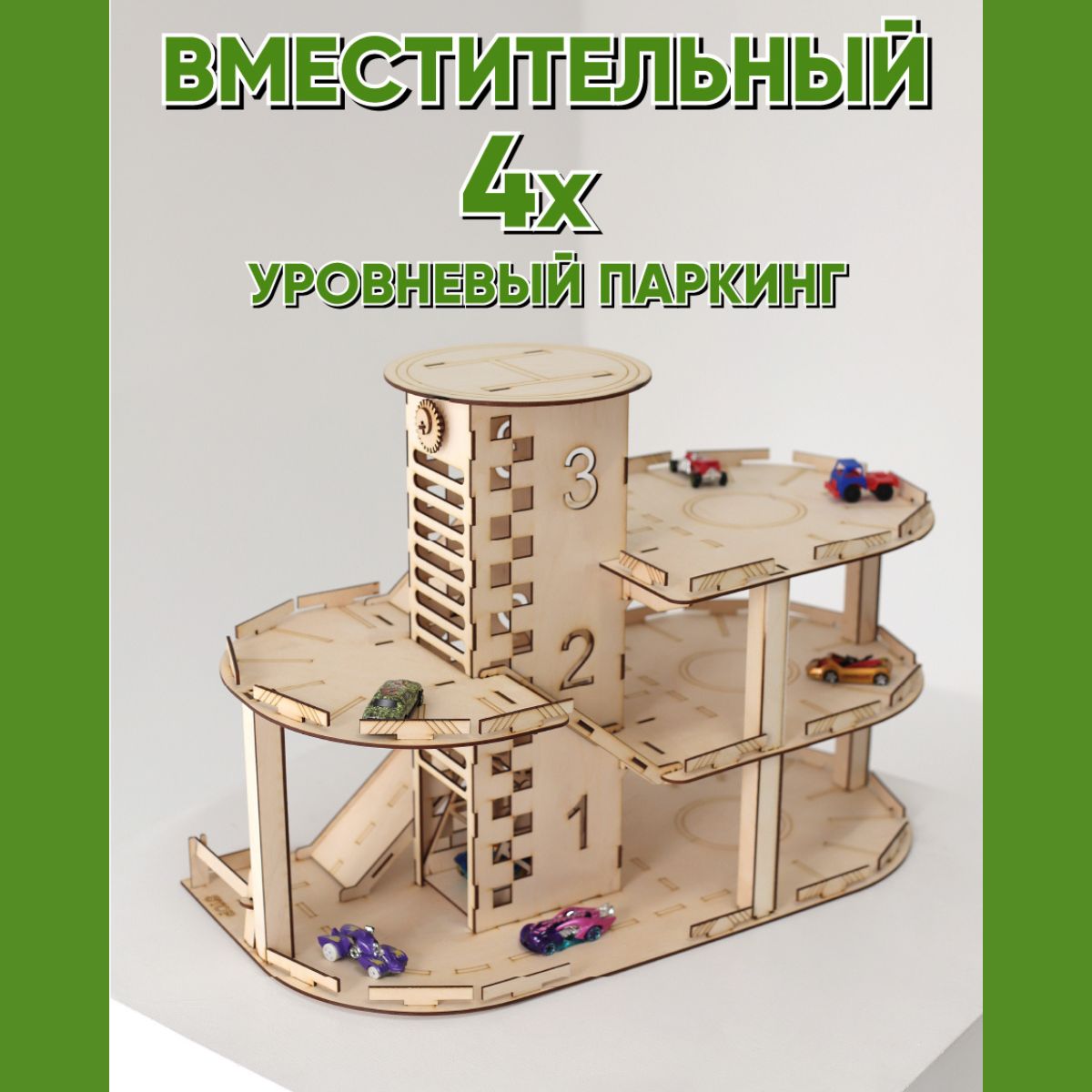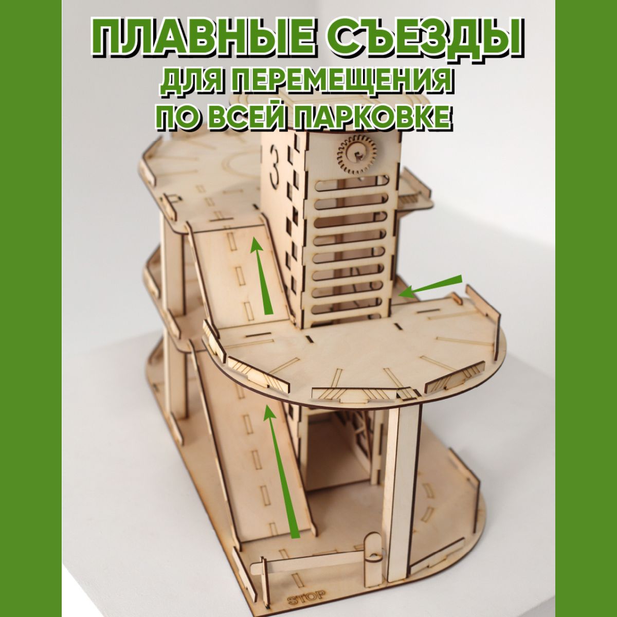 Описание: ПАРКОВКАПарковка для машинок деревянная изготовлена из натурального материала – деревянной фанеры. Размер собранного паркинга: высота - 430 мм., длина - 600 мм., глубина - 300 мм. Автостоянка не имеет ярких рисунков и лакокрасочного покрытия, поэтому ребенок сам сможет проявить фантазию и разукрасить свою игрушку как ему нравится.ПРЕИМУЩЕСТВАГараж состоит из 4 уровней. Детская машинка легко перемещается по паркингу благодаря плавным съездам. Отличительной особенностью стоянки для машин является наличие лифта и поднимающегося шлагбаума. Механизм лифта с помощью веревки поднимает машинки на ярусы, а шлагбаум пропускает авто на паркинг. Такие элементы в игрушках всегда приводят детей в восторг. На вернем этаже расположена площадка для вертолета. ПАРКОВКА - ЛУЧШИЙ ПОДАРОК ДЛЯ МАЛЬЧИКА!Детская многоуровневая стоянка для машинок станет незабываемым подарком для каждого мальчишки. Она вовлечет ребенка в игру, поможет отвлечь от гаджетов и обеспечит несколько часов тишины для отдыха родителей. Автопарковку можно использовать и как полку для машинок. С ее помощью можно приучить детей убирать игрушки по местам и наводить порядок в комнате.
