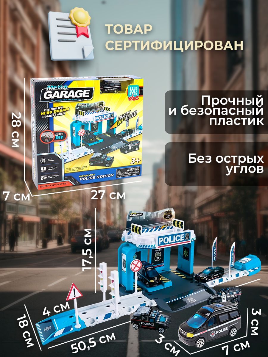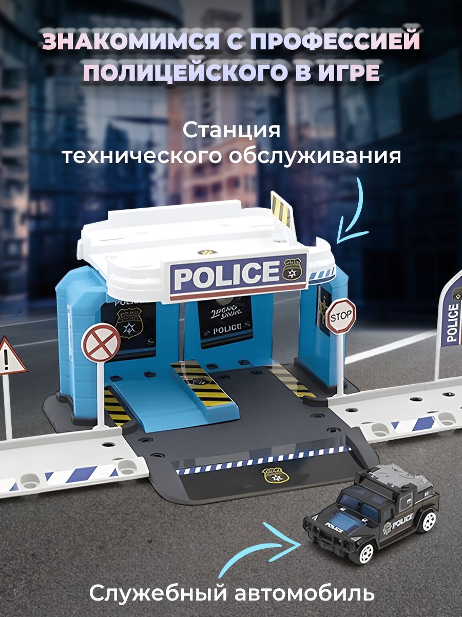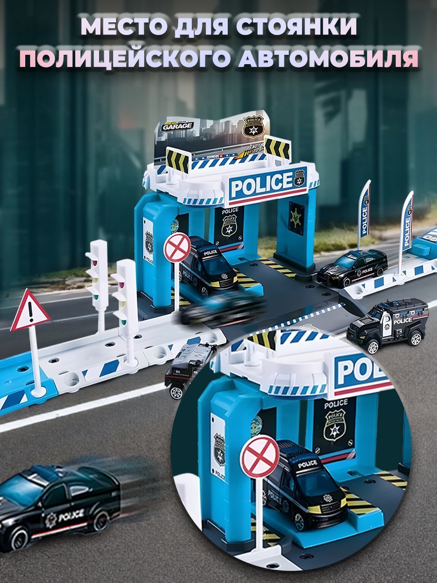Парковка для машинок полиция WiMi с катапультой для запуска, паркинг с дорогой для машинок