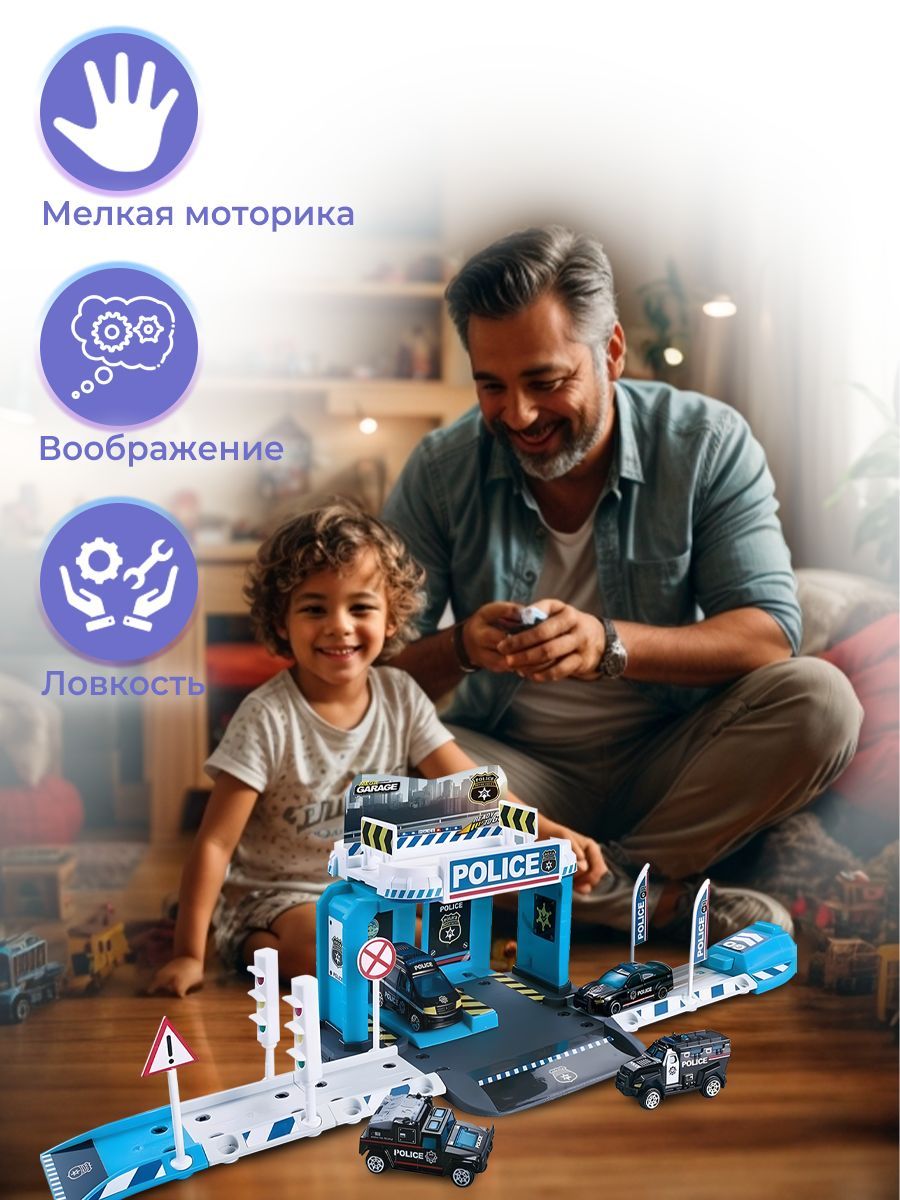 Доверьте своему ребенку эту уникальную игрушку, которая принесет много радости и восторга. Мы уверены, что с помощью полицейского набора ваш ребенок сможет создавать свои собственные истории и захватывающие полицейские приключения. Игрушечная парковка с машинкой станет отличным подарком для любого маленького автолюбителя и позволит проводить время с пользой и удовольствием.