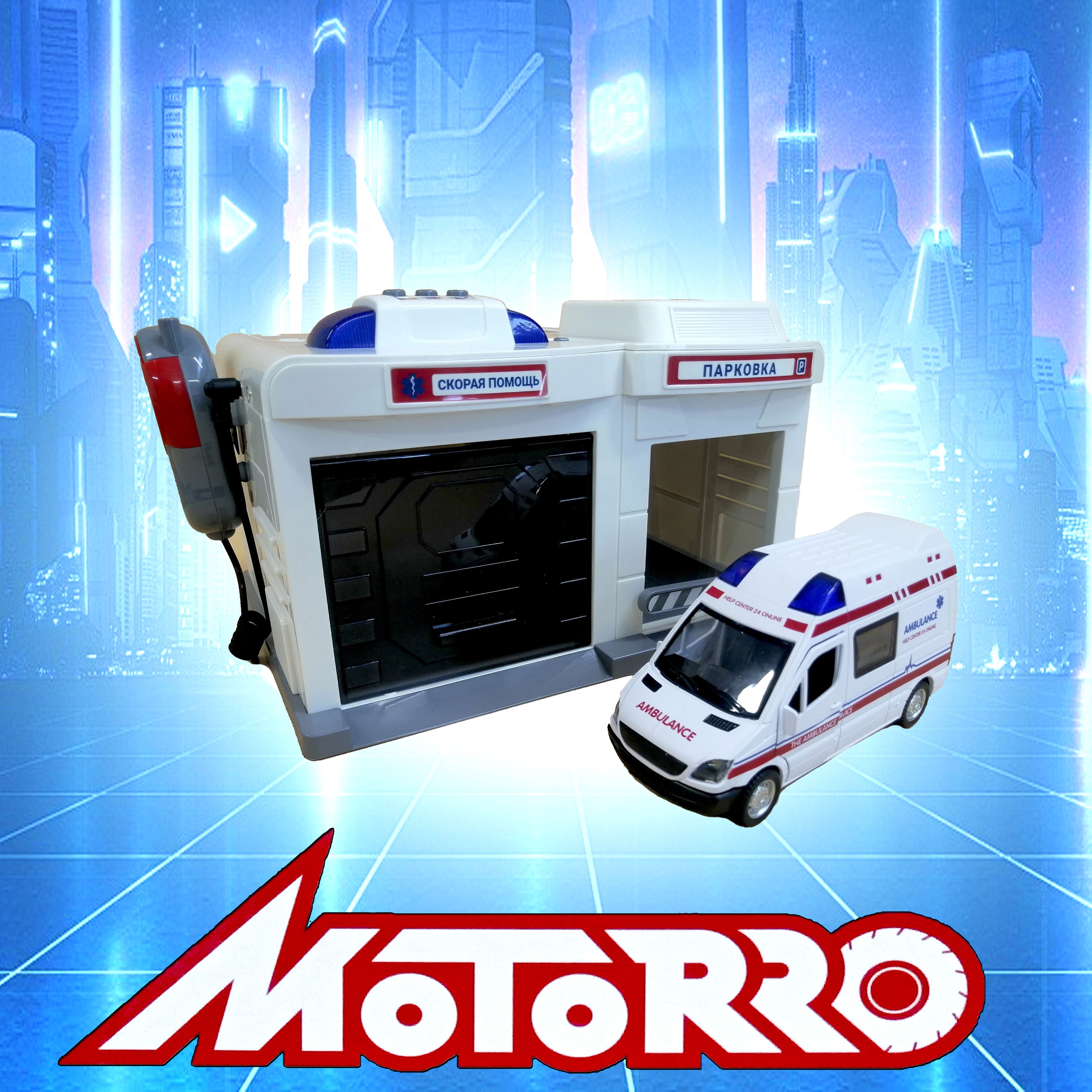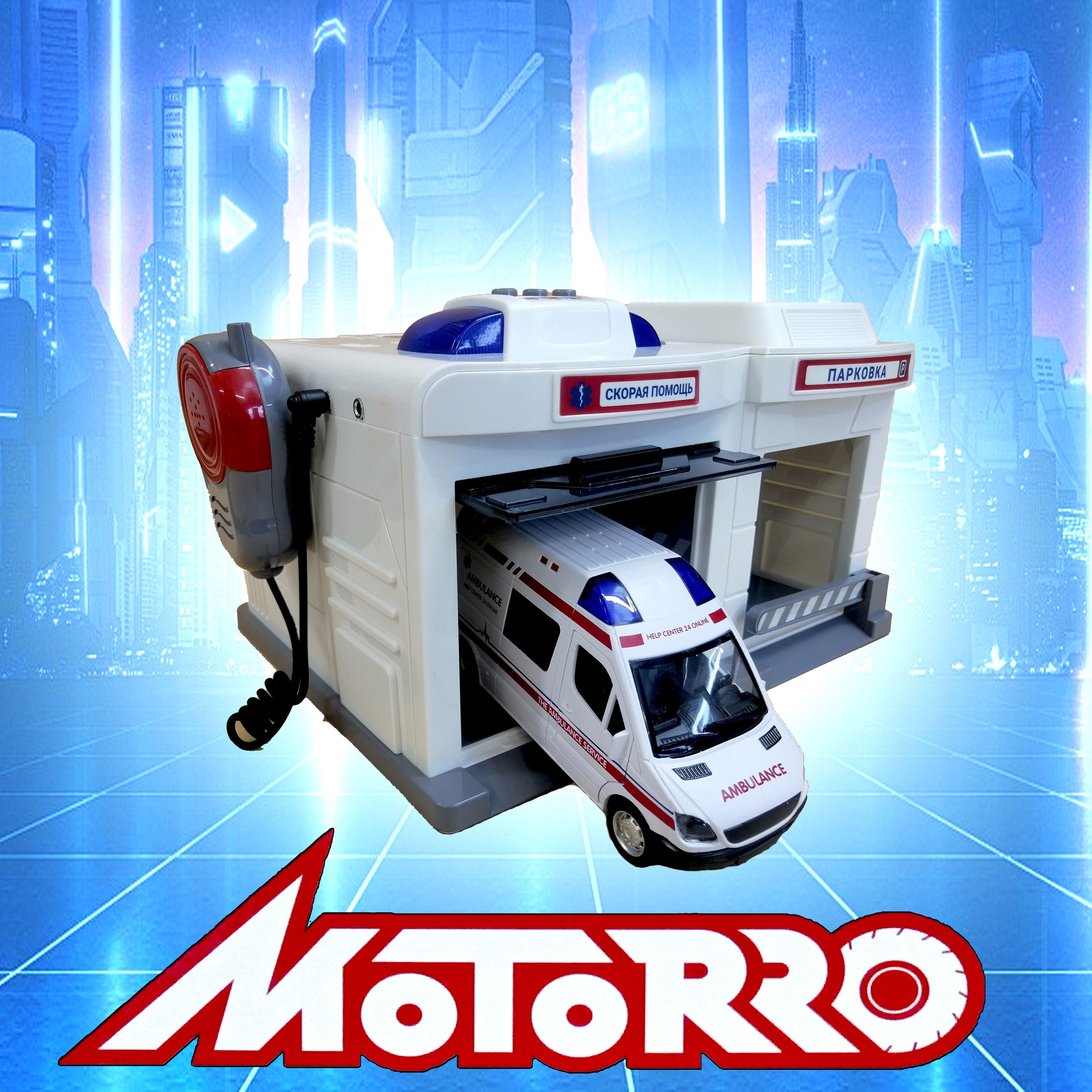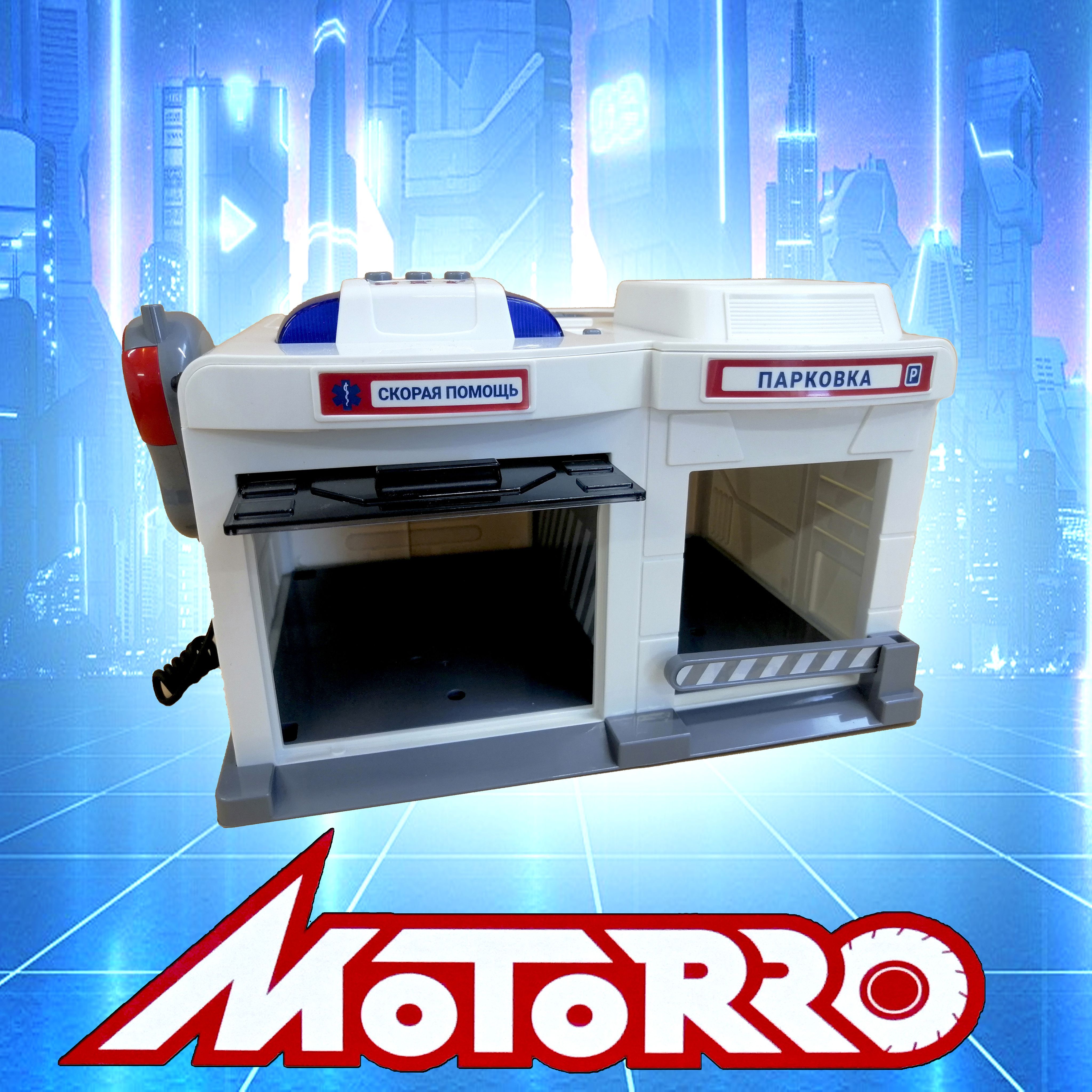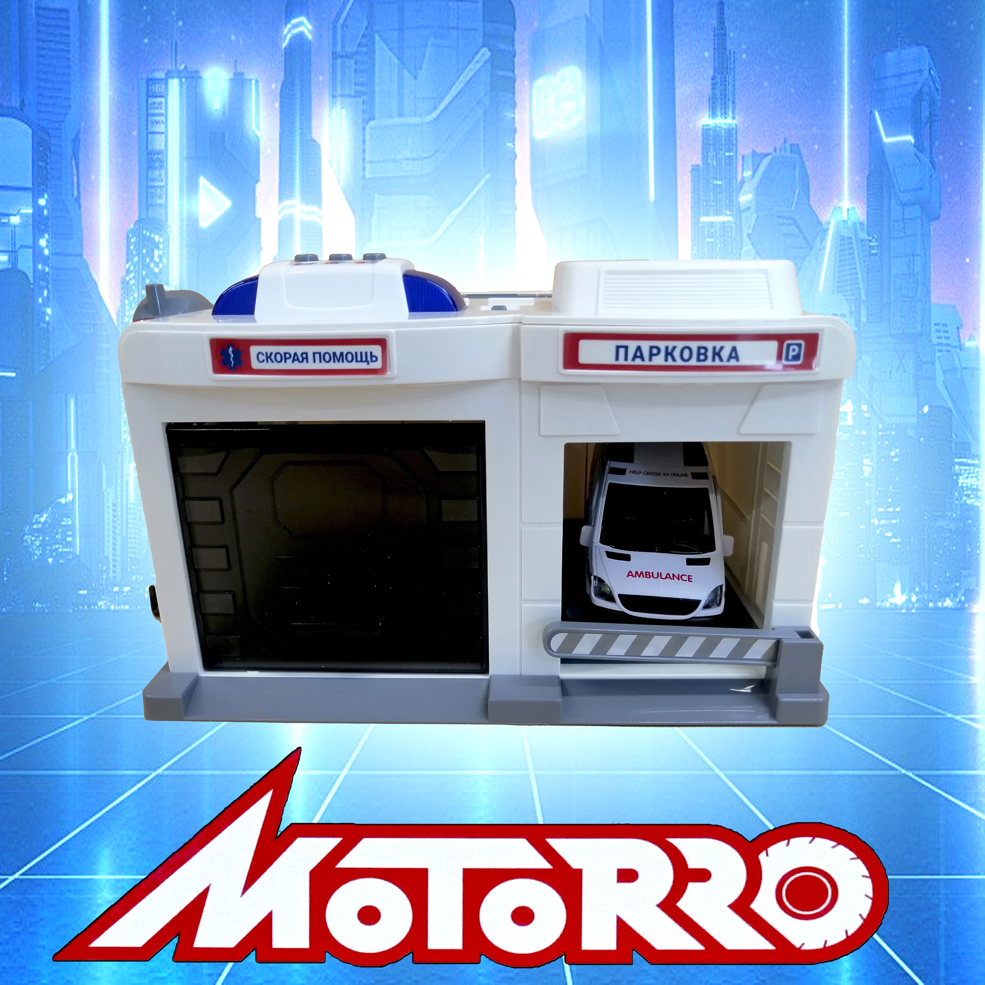 Парковка для машинок с рацией TM MOTORRO "Скорая помощь" 2 отсека, 1 металлическая машинка в комплекте, свет/звук, в коробке .