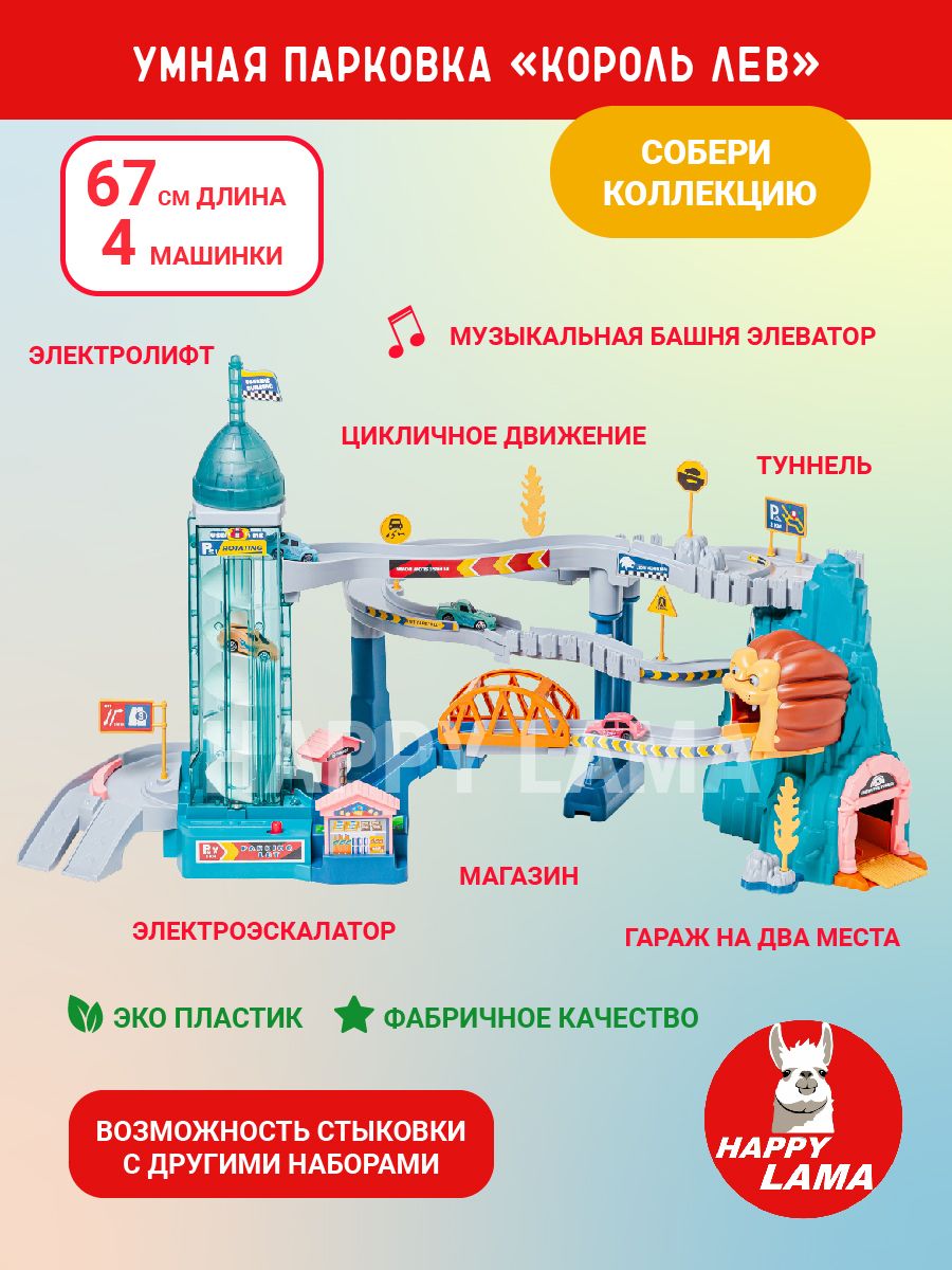 Описание: Коллекционные УМНЫЕ парковки от HAPPY LAMA! Хит продаж 2022! Лучшее предложение на сегодняшний день по многофункциональности и цене! Собери всю коллекцию! Все игрушечные парковки стыкуются между собой! Машинки размером 5*2 см. с встроенным центральным металлическим инерционным колёсиком под днищем, и специальнлй выемкой для зацепа подъёмника. В комплект входят ограждения, указатели, мачты освещения и АЗС. Пластмассовые ограждения похожи на арочные балки ж/д-моста, а набор указателей и автозаправок делают игрушку похожей на настоящую автомобильную трассу. "Круговой" демонстрационный режим работы. Достаточно включить электроподъёмники и поставить на верхний пандус одну или несколько машин - и они начнут ездить по кругу! Элеваторы имеют разные скорости подъёма. Батарейки в комплект не выходят! Парковка упакована в красивую прочную коробку с ручкой для переноски. Подробное описание в фотографиях (листай вправо).