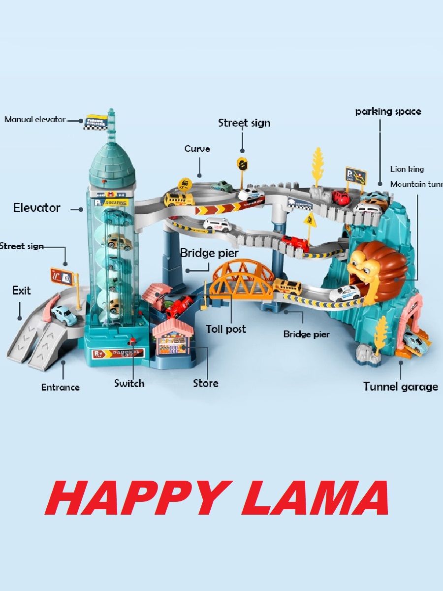 Парковка для машинок, умный трек паркинг, гараж "Логово льва"