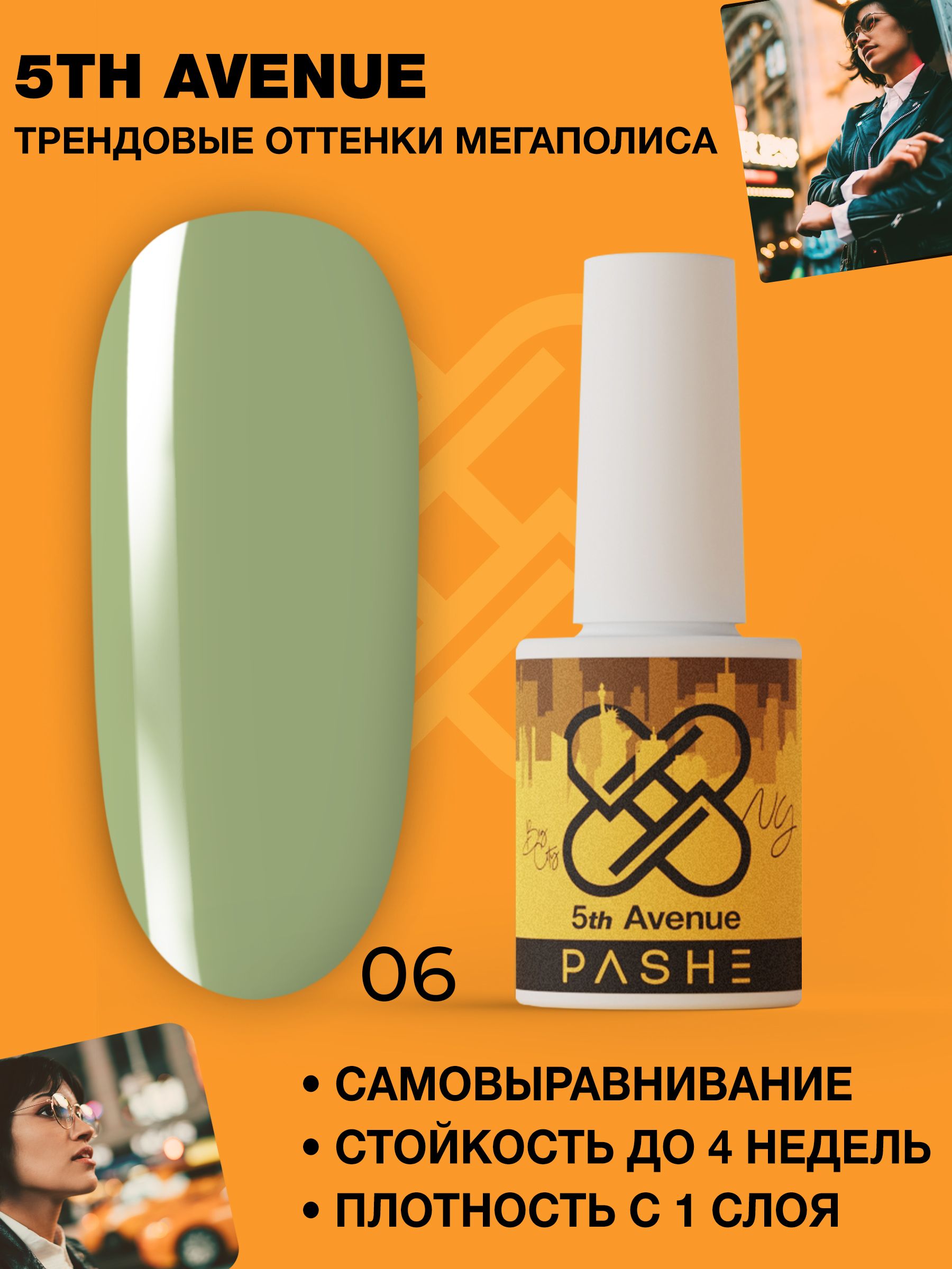 PASHE Гель-лак 5th Avenue №06 Городские джунгли (зеленый) 9 мл - гель лак для ногтей хаки
