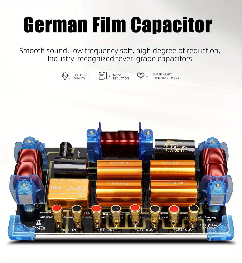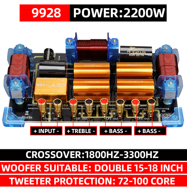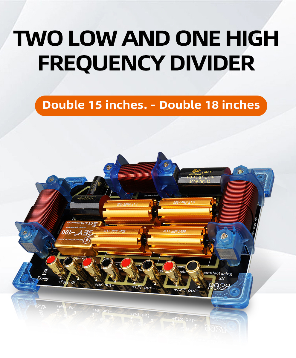 Пассивный двойной делитель высокой мощности 2200 Вт, один высокий, два высокомощных делителя; Двойной 15-дюймовый двойной 18-дюймовый фильтр для пересечения динамика 1800-2800 Гц,