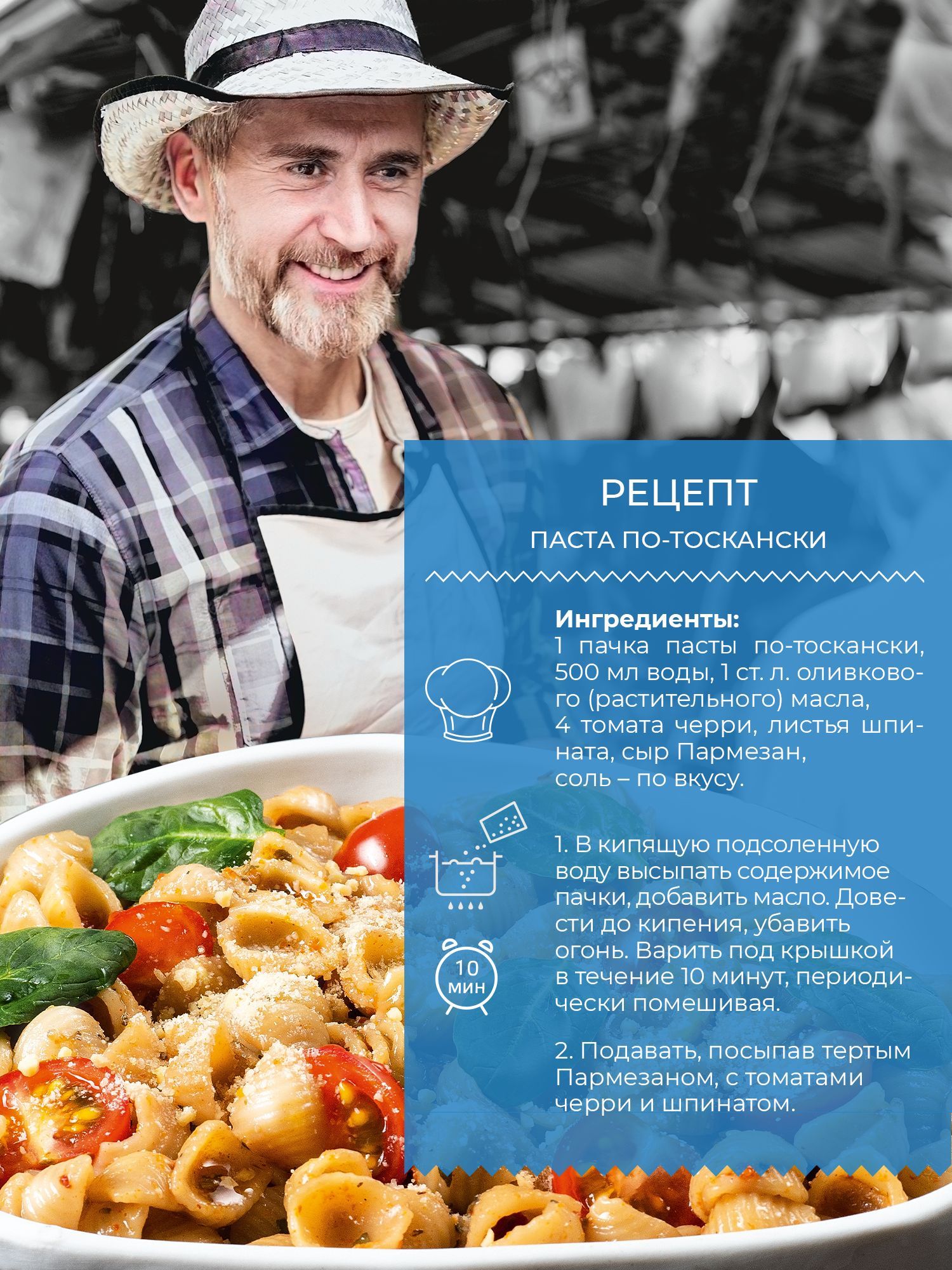 На основе смеси всего за 10 минут можно приготовить гарнир или самостоятельное второе блюдо для обеда или ужина. В 500 мл кипящей подсоленной воды высыпьте содержимое пачки, добавив 1 ст. л. оливкового масла. Варите под крышкой в течение 10 минут, периодически помешивая. С пастой прекрасно сочетаются помидоры черри, шпинат и тертый Пармезан. Можно дополнить блюдо густым сметанным соусом или соусом бешамель, приготовить с фаршем или ветчиной. Есть множество вариантов приготовления гарниров и вторых блюд на основе этой смеси, поэтому она подойдет и для любителей мясных блюд, и для вегетарианцев и веганов. Кусочки сушеных помидоров, томатный порошок, репчатый и молотый чеснок придают аппетитному блюду насыщенный овощной вкус. Копченая молотая паприка, измельченный базилик, орегано и молотый черный перец добавляют макаронам пряные нотки и неповторимый аромат. Продукт не содержит ГМО и соль, а также вредные пищевые добавки, его состав на 100% натуральный. Макаронные изделия из твердых сортов пшеницы не только вкусные, но и полезные.изделия в наборе состоят только из воды и муки из твердых сортов пшеницы. Благодаря этим качествам его оценят приверженцы здорового и правильного питания (ПП). Паста по-тоскански Yelli станет прекрасным подарком для тех, кто любит готовить и хочет питаться правильно.
