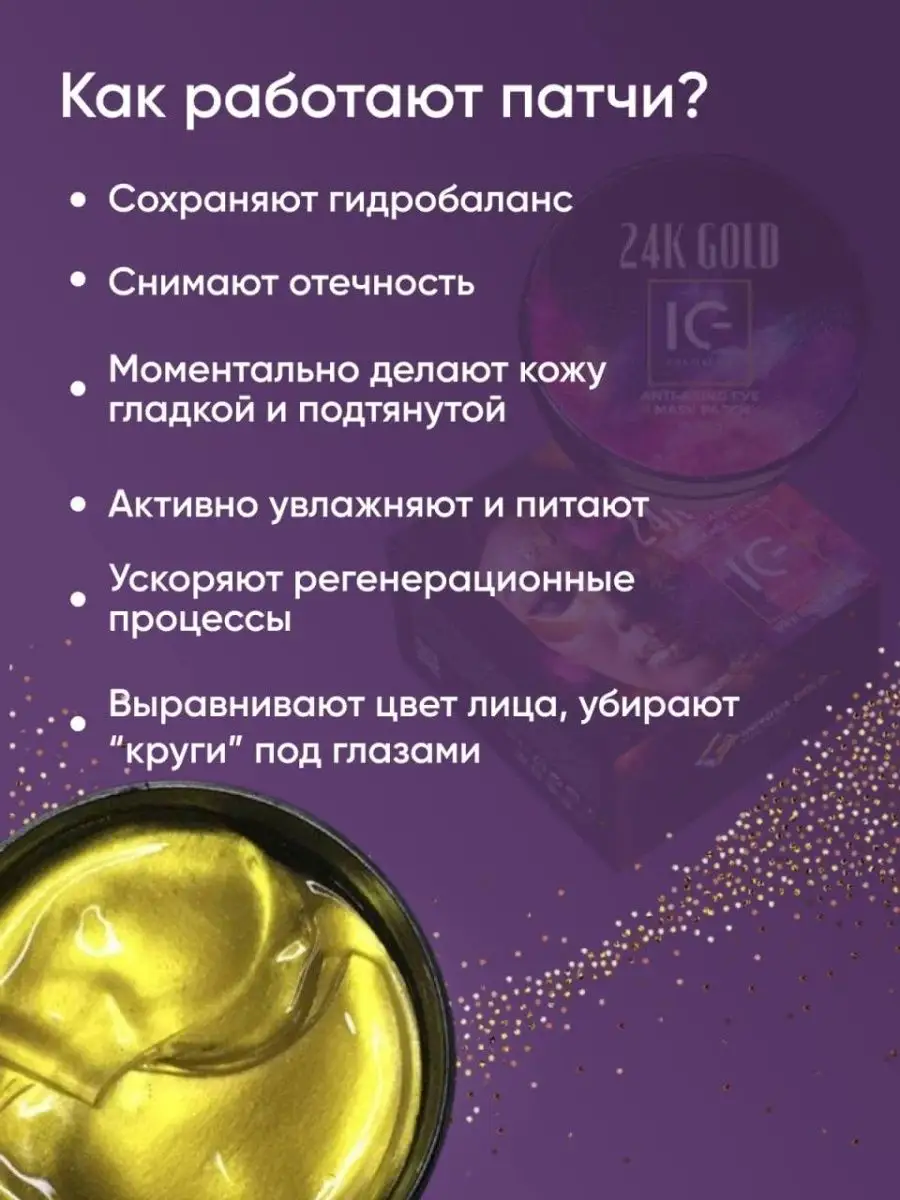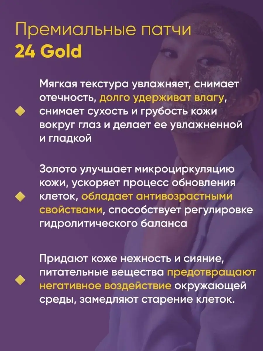 Вид патчей гидрогелевые; с золотом; с гиалуроновая кислота