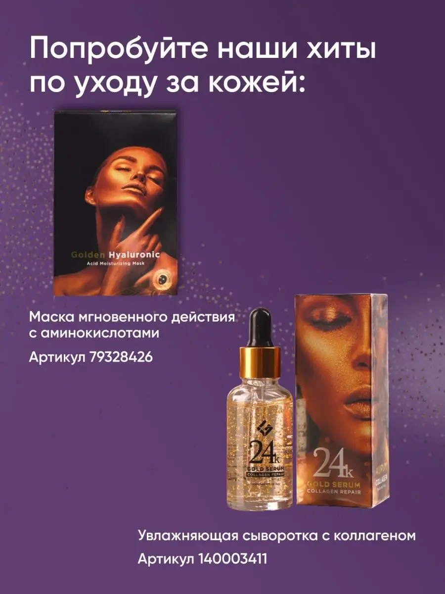 Артикул 142503577 Состав ВОДА, СОРБИТ, ГЛИЦЕРИН, 24К ЗОЛОТО, БУТИЛЕНГЛИКОЛЬ, СЕКРЕЦИЯ УЛИТКИ ФИЛЬТРАТ, ТРЕГАЛОЗА, ГИАЛУРОНАТ; НАТРИЯ, ХОНДРУС ХРУСТЯЩИЙ (КАРРАГИНАН), ГЛЮКОМАННАН, ХЛОРИД КАЛИЯ, АЛОЭ ЭКСТРАКТ БАРБАДЕНСИСА; ЭКСТРАКТ ЦЕНТЕЛЛЫ АЗИАТСКОЙ, АВЕНА САТИВА β-ГЛЮКАН, НИАЦИНАМИД, КСАНТАНОВАЯ КАМЕДЬ, ГИДРОКСИПРОПИЛ