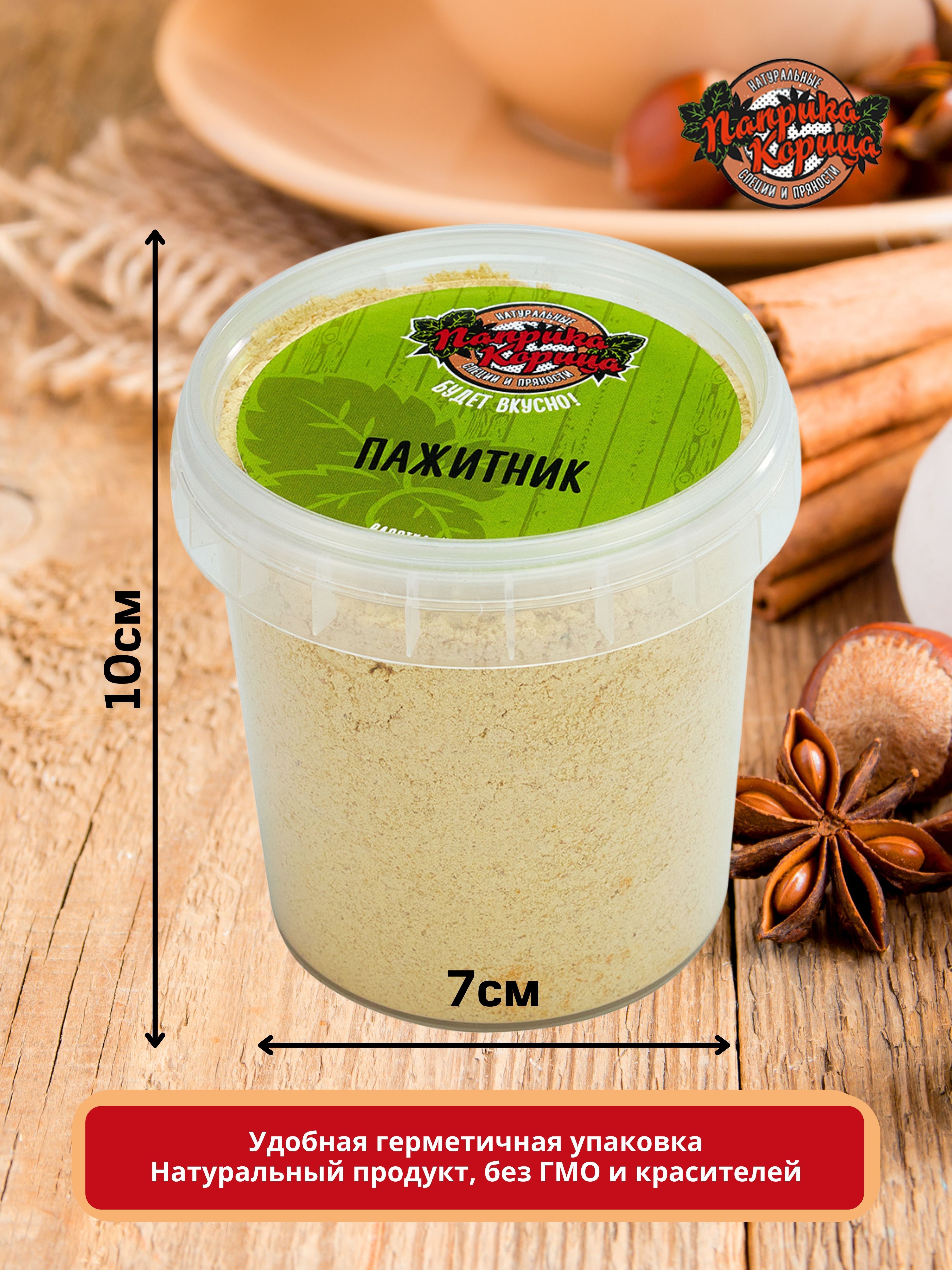 Приправа упакована в герметичное ведерко из пищевого пластика, диаметром 7 см и высотой 10 см, для правильного и удобного хранения. Для надежной транспортировки мы заворачиваем товар воздушно-пузырьковой плёнкой и запаиваем в пакет.