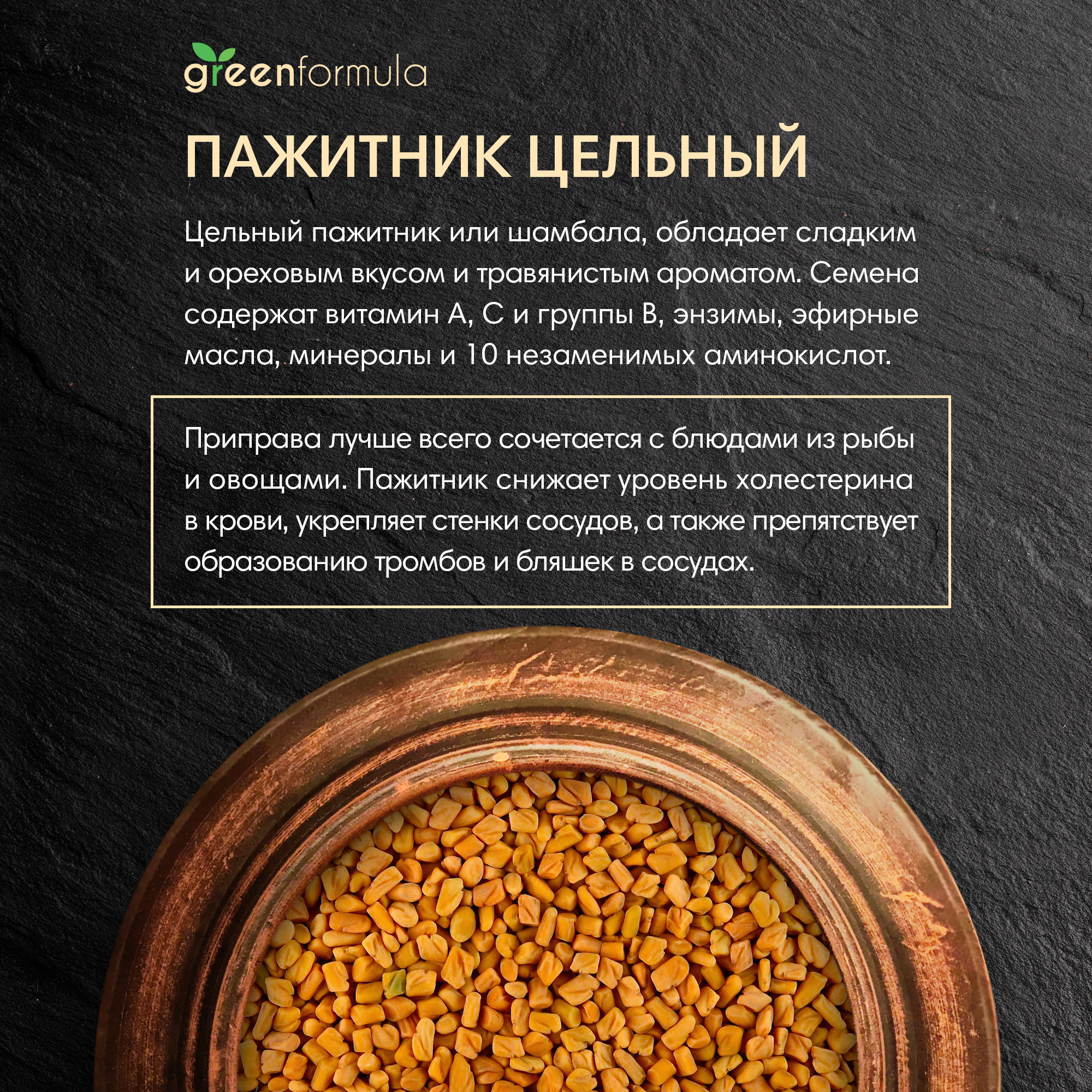 Описание: НАТУРАЛЬНЫЕ СЕМЕНА СЕННОГО ПАЖИТНИКАСемена растения имеют тонкий приятный запах, который сильнее раскрывается при термической обработке. Вкус — с легкими ореховыми нотками, пикантный, с ненавязчивой горечью.Текст при отключенной в браузере загрузке изображенийПАЖИТНИКПажитник - достаточно экзотическая пряность, которую редко встретишь на полках магазинов. Однако он обретает всё большую популярность среди поваров и кулинаров во всём мире, ведь эта специя дарит блюдам необычный и яркий сладковатый вкус с легкой горчинкой, который особенно раскрывается при обжаривании.Текст при отключенной в браузере загрузке изображенийШАМБАЛАКак и любое семя, пажитник содержит максимальное количество полезных веществ, необходимых для роста и развития зародыша. Это высокобелковый продукт — в составе более 20% белка, а также витамины А, С, группы В, микро- и макроэлементы: калий, фосфор, кальций, селен, железо, цинк и пр. Шамбала содержит много алкалоидов и биофлавоноидов, обладающих бактерицидным эффектом и защищающих от инфекций.Текст при отключенной в браузере загрузке изображенийУНИВЕРСАЛЬНАЯ СПЕЦИЯПажитник - прекрасная добавка к мясным, рыбным и овощным блюдам, а также соусам, выпечке, напиткам и сыру. Регулярное употребление пажитника ускоряет обмен веществ и возбуждает аппетит, борется с простудными заболеваниями и улучшает состояние кожи.
