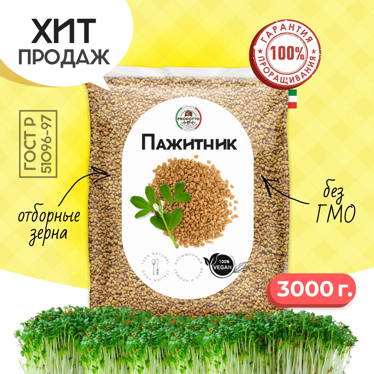 Пажитник (шамбала,хельба, чаман, фенугрек) семена 3000 грамм, приправа (специя, пряность) для проращивания микрозелени, салатов бастурмы соусов мясных рыбных овощных первых и вторых блюд