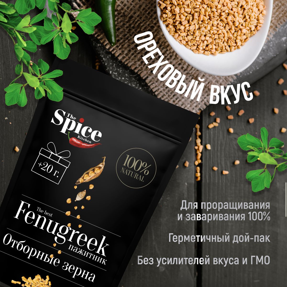 Описание: Пажитник - пряность растительного происхождения, обладает сладким вкусом с ореховыми нотками и горчинкой, а также травянистым ароматом. Чаще его используют в качестве натурального загустителя для подливы и соусов, но он также широко применяется для приготовления гарниров и супов.