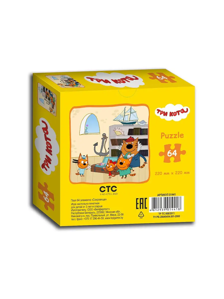 Пазл 64 элемента Три кота "Сокровища".