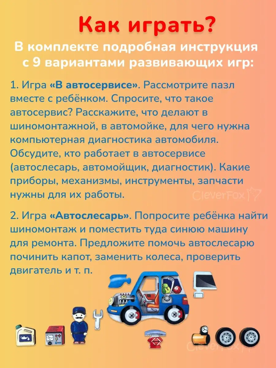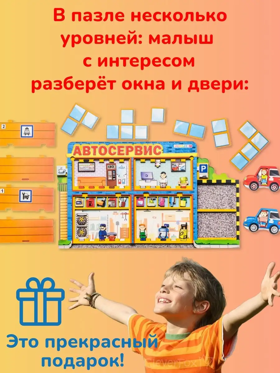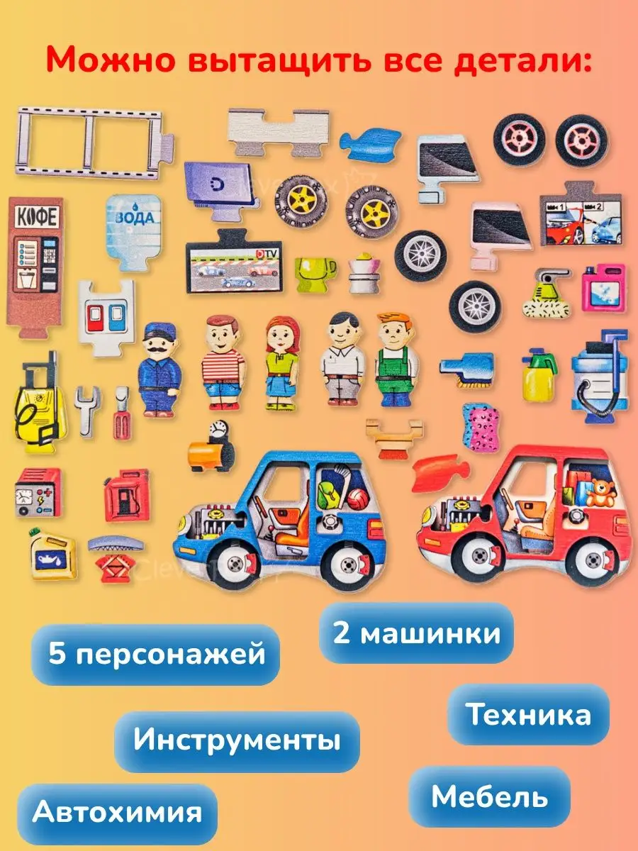 Описание: Потрясающий деревянный пазл с множеством увлекательных деталей - мальчики и девочки играют часами. Более 8 вариантов игр в одной развивающей игрушке! От такой развивашки в восторге не только дети - можно надолго заиграться всей семьей! Наша красочная игрушка подходит для малышей 2, 3 года и ребят 4 5 6 7 и 8 лет. Это достойный подарок. Игровая доска создана по методике Монтессори, состоит из рамки и вкладышей. Оригинальная настольная игра качественная и безопасна для детей. Детальки ярких цветов с ровными краями, у них нет запаха. Пазл изготовлен в России из натурального древесного материала, прошел все необходимые сертификации. Красочные картинки нанесены на поверхность дерева с помощью стойкой УФ печати, а не наклеены. Игра еще до школы учит думать, изучать, развивает логику, творческие способности. Яркие краски привлекают внимание ребенка, а множество мелких деталей отлично развивают моторику рук. Во время игры работает воображение и формируется понятие ребёнка об окружающем его мире. Деревянная мозаика полезна тактильными ощущениями и сенсорным восприятием. Рекомендована педагогами, логопедами, нейропсихологами. Головоломка станет нескучной обучающей игрой. Развивайка дарит эмоции, предлагает много вариантов логических заданий и сюжетно-ролевых игр, с которыми справятся дошкольники. Ребёнок разбирает, собирает, придумывает интересные истории и сюжеты. Можно использовать iq puzzle как сортер - сортировать предметы мебели, посуды, техники, одушевлённые и неодушевлённые предметы. Можно использовать красивые фигуры как трафареты - обводить, а потом раскрашивать. Деревянный планшет спасет как антистресс в дороге. Для того, чтобы наши любимые покупатели получали конструктор в целости, мы дополнительно упаковываем игру в воздушно-пузырчатую пленку. Также мы вкладываем подарок - zip-пакет с бегунком для хранения мелких деталек, поэтому фигурные детали детского набора не потеряются. Сделайте заказ пока рамка-вкладыш есть в наличии. Этот пазл быстро разбирают на подарки!