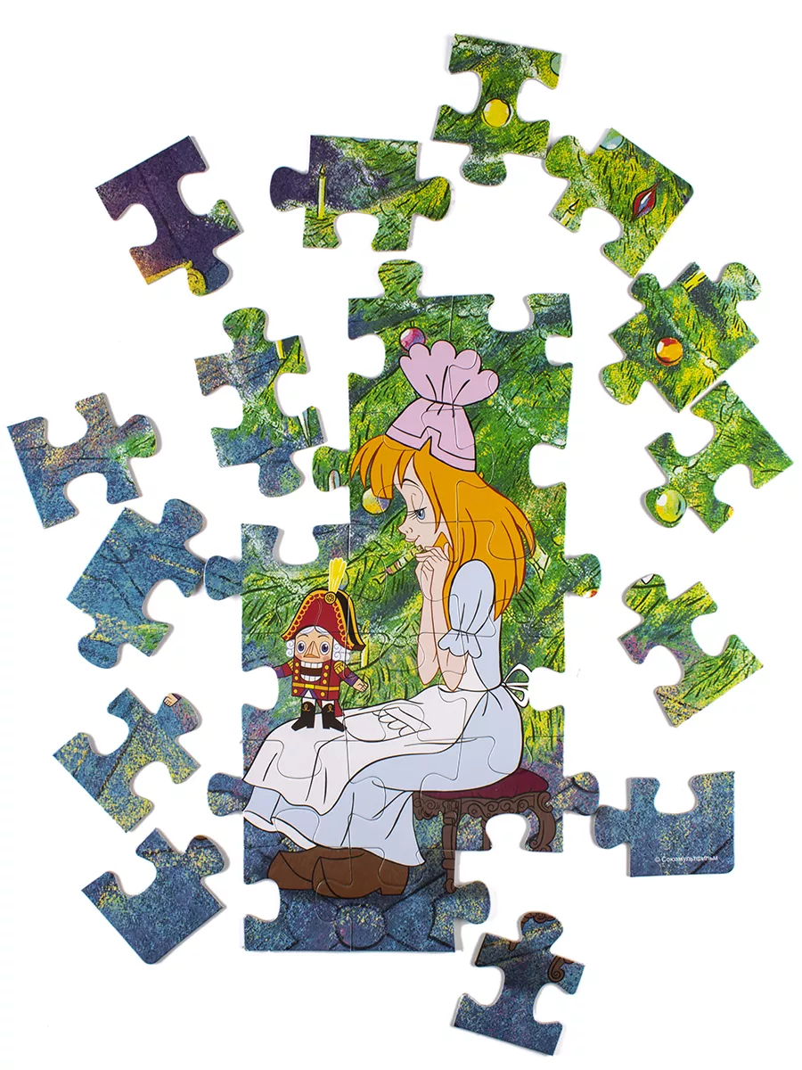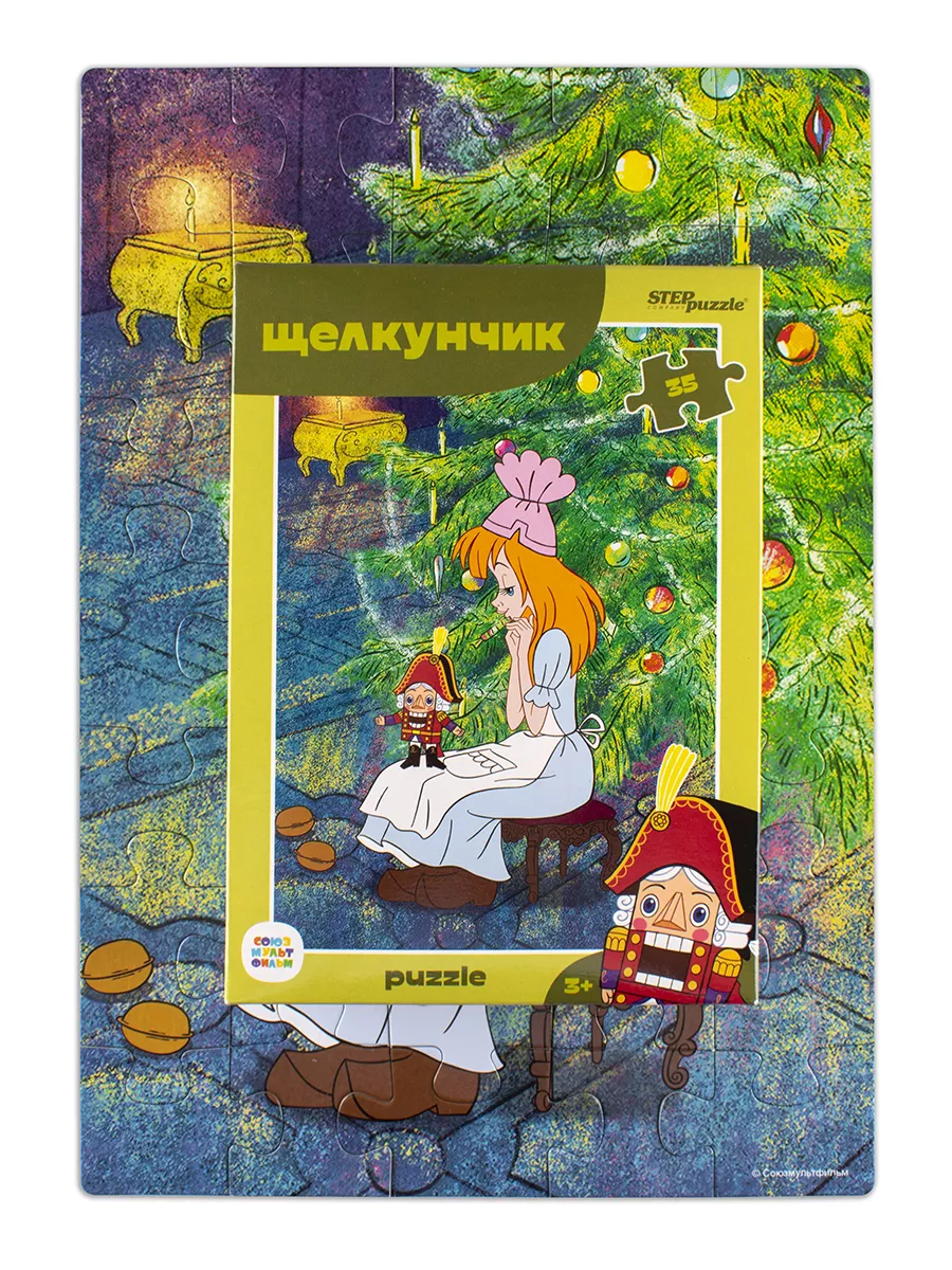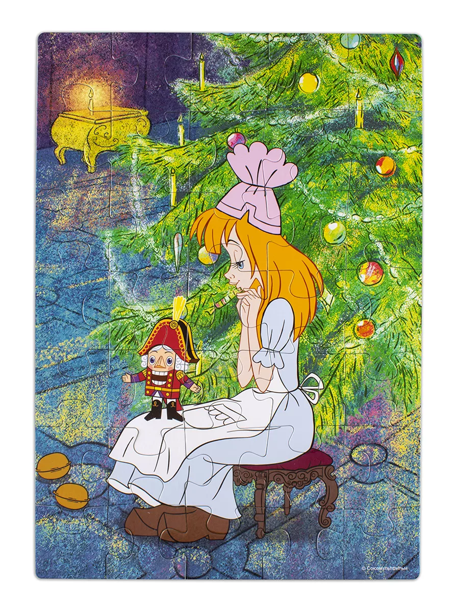 Описание: Пазл "Щелкунчик" состоит из 35 деталей. Он подойдёт детям от 3 лет. Размер собранной картинки - 33 х 23 см. Размер одной детали - 4,6 х 4,5 см. Детали достаточно крупные, деткам будет удобно их держать в руках, переворачивать и складывать в картинку. На картинке этого пазла мы видим Машу, которая сидит у новогодней елки с любимой игрушкой на коленях. Герои: Щелкунчик Мари Штальбаум Мышиный король Пазлы от Step Puzzle - это игры для детей от 3 лет (они также подойдут малышам, которым 3 года и 4 года). Мозаика станет отличным подарком для ребенка любого возраста, для мальчика и для девочки. Пазл можно презентовать на 23 февраля, 8 марта, День рождения, а также Новый год и Рождество. Пазл удобно взять с собой в путешествие, в машину, на прогулку или в гости. Пазл выбирают для детского творчества и досуга, а также в качестве настольной игры для компании и всей семьи. Главной задачей при производстве пазлов является здоровье и безопасность вашего ребенка, поэтому делая игры для малышей, мы используем экологичные и безвредные для детей материалы. Все элементы мозаики качественные и яркие, прочные. Детали пазла идеально подходят для маленьких детских ручек: они не выскальзывают, легко соединяются и ровно ложатся. Пазлы - отличный помощник для раннего развития ребенка. Оригинальные пазловые замки помогут понять, правильно ли ребенок собрал пазл, а интересные картинки не оставят малыша равнодушным. Собирая пазл ребенок будет развивать мелкую моторику, память и внимание, а также зрительное восприятие, речь, усидчивость, логику и пространственное мышление. Пазлы также обладают антистресс эффектом: снижают напряжение и эмоциональное перевозбуждение ребенка.