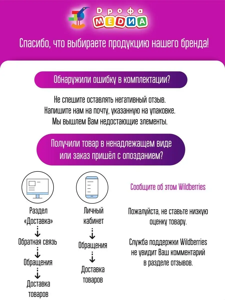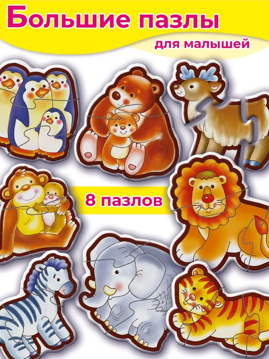 Описание: Игровой набор Пазлы- для малышей и детей от Дрофа-Медиа прекрасно подходит для первого знакомства ребенка с мозаикой, способствует формированию навыка соединения целого изображения из двух-трёх элементов. Детские пазлы учат находить нужный элемент из множества похожих и располагать его в нужном месте. Крупные пазлы подходят для самых маленьких и помогут разнообразить занятия с ребёнком, сделать их интересными и полезными. Сначала можно собрать пазлы вместе с ребенком, рассказать про каждое животное и их особенности, а потом предложить малышу самостоятельно собрать пазлы. Игра детская поможет в игровой форме изучать животных, придумывать истории о них, запоминать части тела и учить звуки, которые издают звери. Крупный пазл (maxi, макси) будет удобен для самых маленьких и ребенку будет удобно собирать "картинки половинки", учить животных. Вместе с ребенком можно придумывать логопедические игры (для запуска речи), играть в зоопарк, загадывать ему головоломки, придумывать разнообразные нескучные игры и развивалки. Этот игровой набор – игрушки в дорогу для малышей - надолго увлечет вашего ребенка. Яркие узнаваемые картинки привлекут внимание даже самых маленьких детей. Игра-пазл - это прекрасный готовый подарок ребенку: мальчику или девочки в любом возрасте. Развивающая игра puzzle - это оригинальный подарок ребенку для дочки; сына; внука или внучки; крестницы на день рождение; на рождение ребенка (на выписку в роддом); крещение ребенка; Новый год; 8 марта и 23 февраля; утренник. Если вы ищете недорогой хороший подарок в детский сад - выбирайте пазлы. Подарочный набор находится в коробке. Детские развивашки удобно взять с собой как игры в дорогу для детей - в машину; поезд или самолет; на прогулку; в кафе; на природу или на дачу. Развивающие игрушки для детей монтессори способствуют навык развитии зрительного восприятия; соединения деталей; координации движений рук; тренирует наблюдательность; развивает мелкую моторику рук; наглядно-образное мышление; для развития речи; памяти; внимания; образного мышления; усидчивости; логики. А также материал для детского сада и развивающих центров, в кабинет для логопеда и детского психолога.