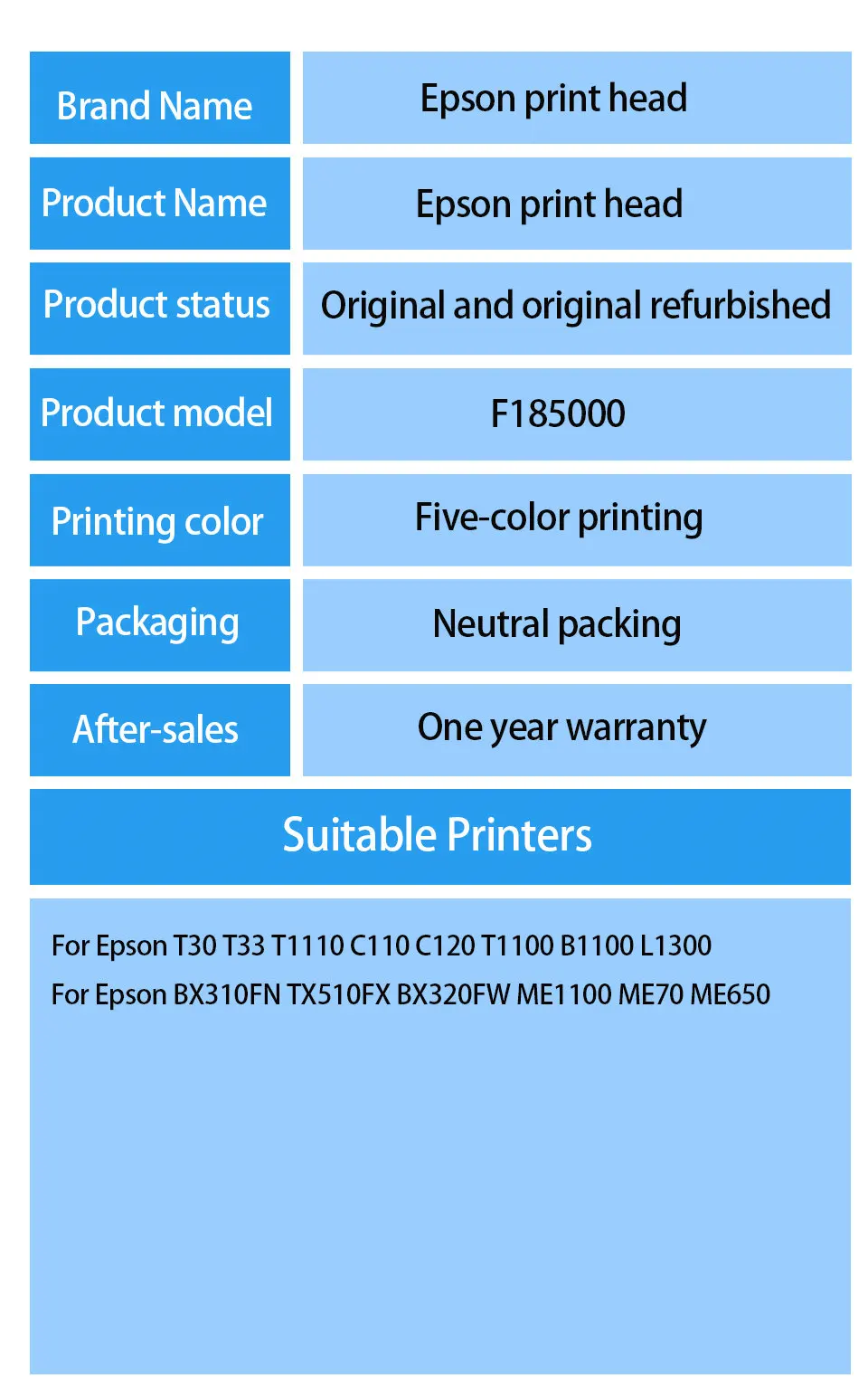 Печатающая головка Epson для Epson F185000 ME1100 ME70 ME650 C110 C120 C10 C1100 T30 T33 T110 T1100 T1110 SC110 B1100 L1300