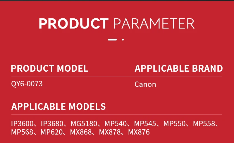 Applicable Models QY6-0073 for Canon IP3600 IP3680 MG5180 MP540 MP545 MP550 MP558 MP568 MP620 MX868 MX878 MX876