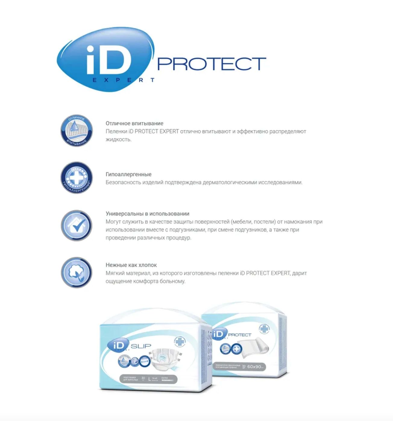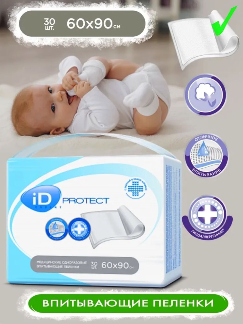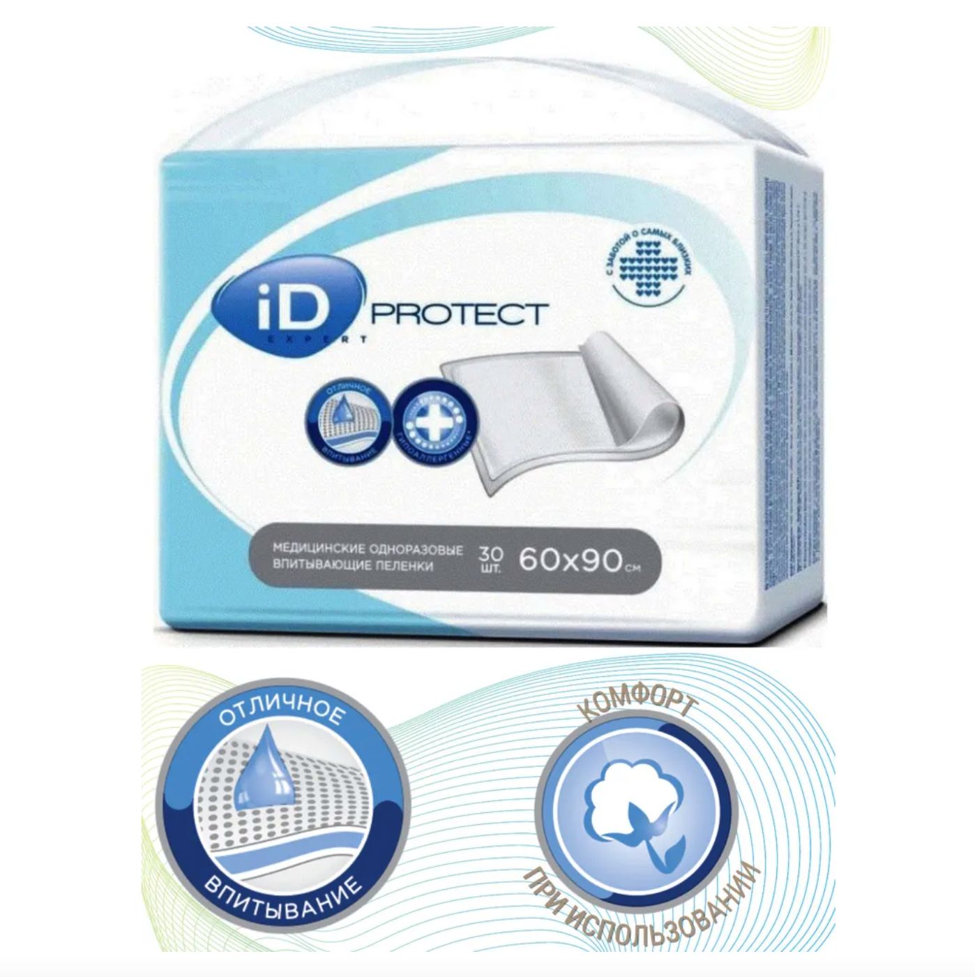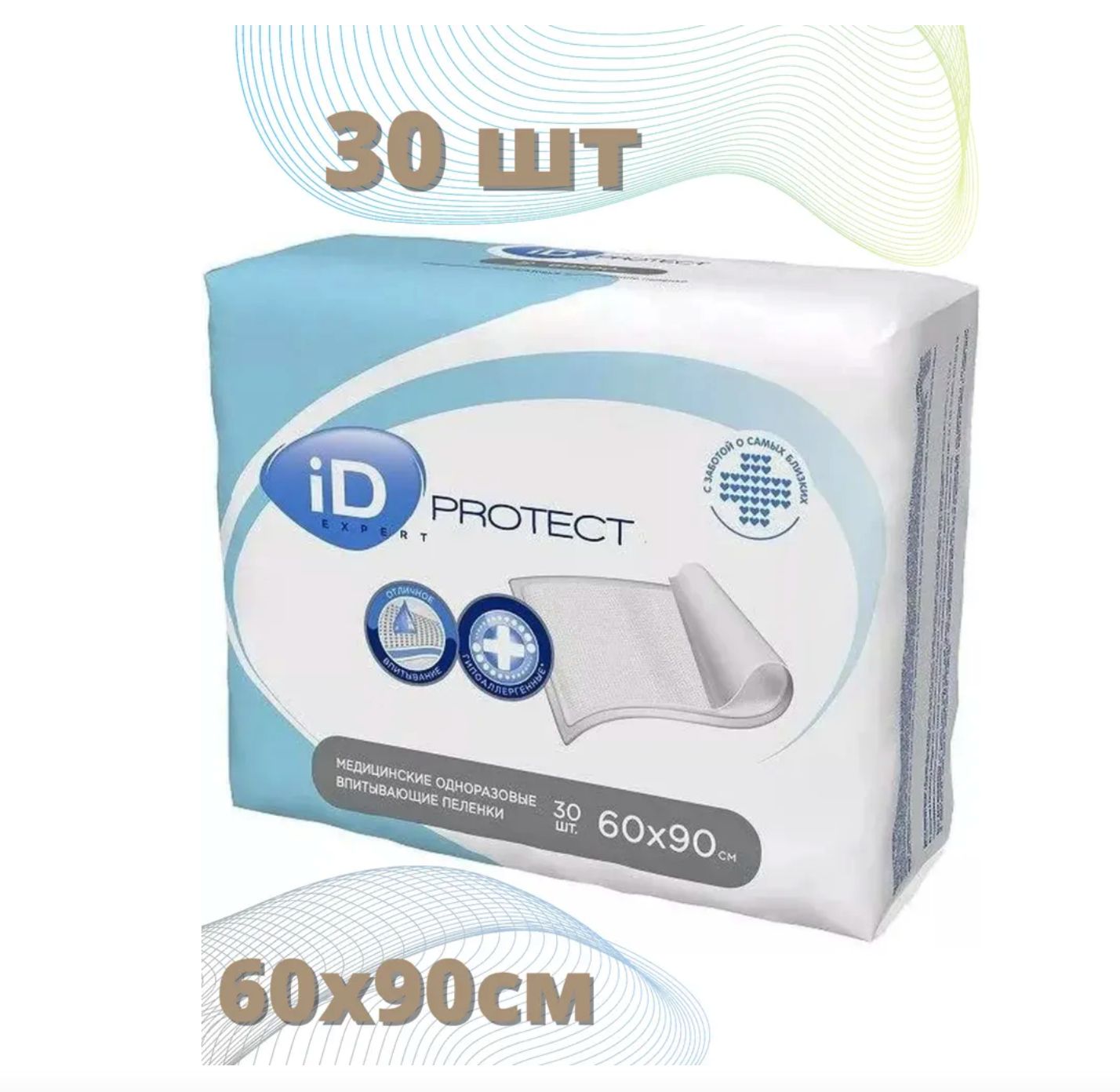 Пеленка медицинская iD Пеленки одноразовые 60х90 впитывающие Эксперт Protect Expert, 30 шт для детей, для взрослых, для животных, 60 х 90 см