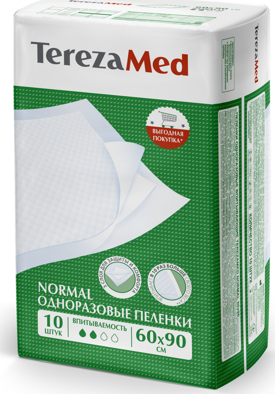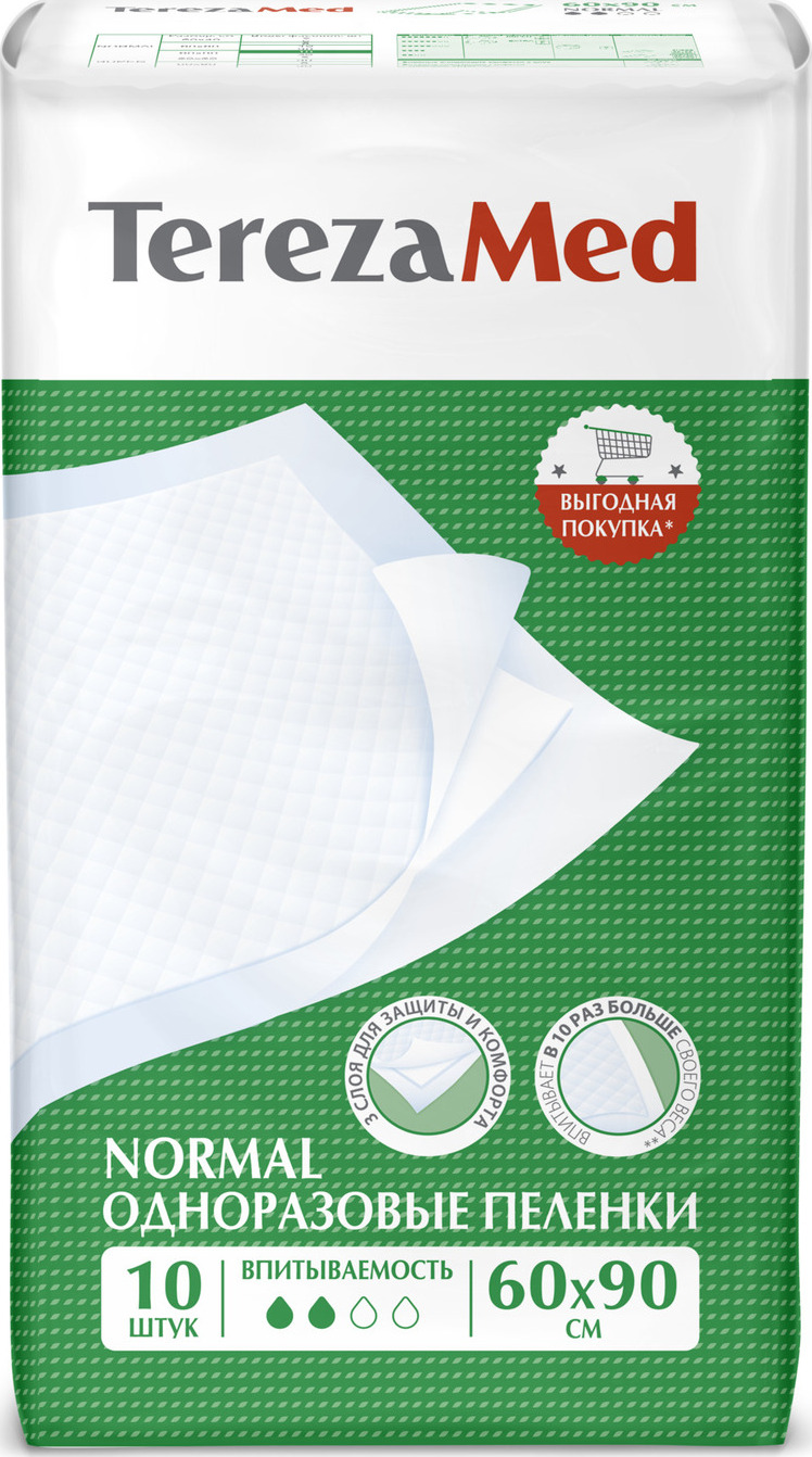 Пеленка медицинская TerezaMed одноразовые впитывающие Normal, 60 х 90 см