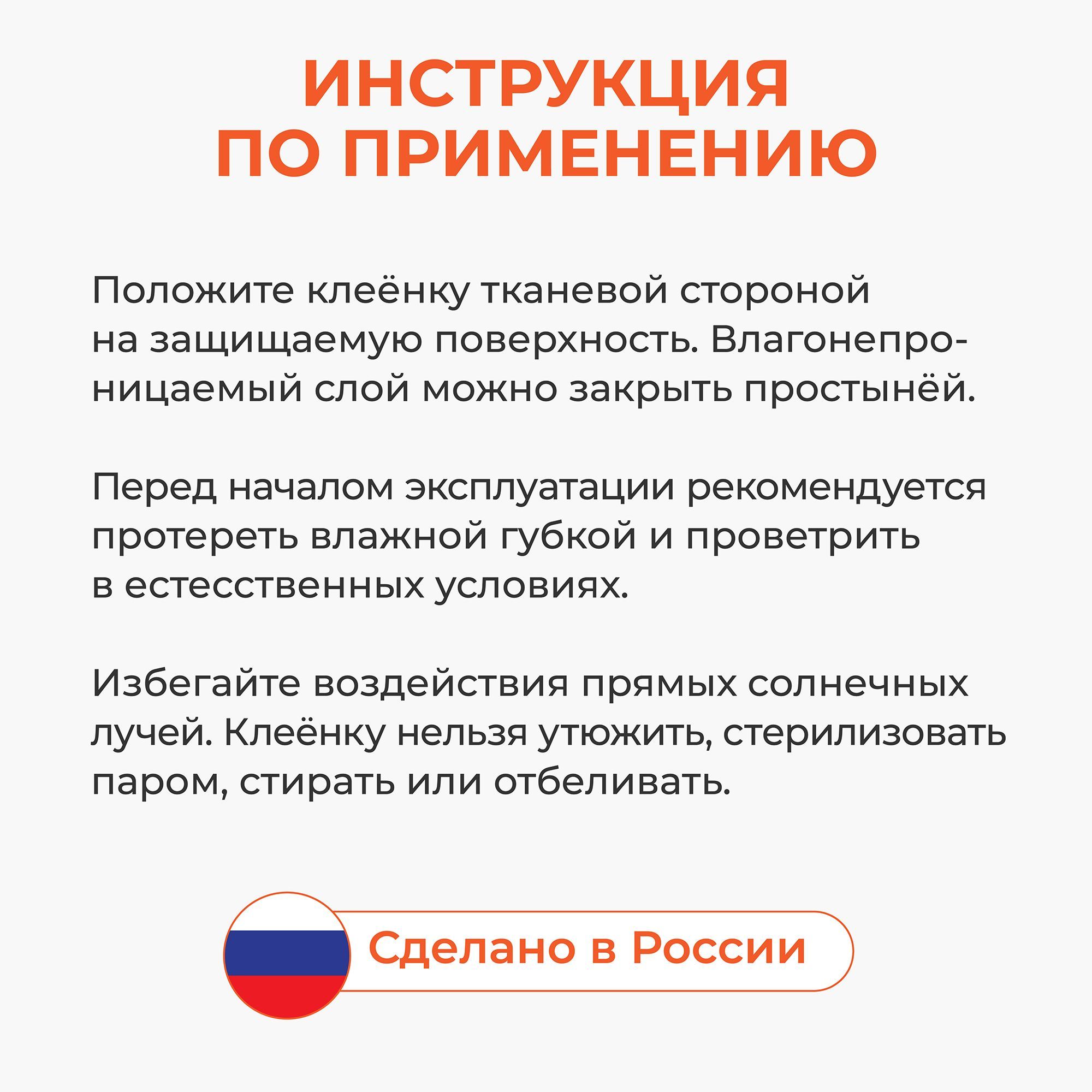 Описание: Клеенка подкладная с ПВХ-покрытием, многоразовая 100х140 см. Клеенка детская. Непромокаемая клеенка применяется в медицинских и бытовых целях. Медицинская клеенка используется при уходе за детьми, защищает матрас от влаги. Благодаря тканевому слою клеёнка не скользит. Обладает высокой теплопроводимостью, быстро приобретает температуру тела, у изделия отсутствует эффект "холодного прикосновения". Экономичная - подходит для многоразового применения. Нанесение ПВХ предохраняет от проникновения влаги и вместе с этим делает клеенку дышащей. Применение: положите клеенку тканевой стороной на защищаемую поверхность, при необходимости сверху накройте простыней. Клеенка Колорит имеет яркий красивый цвет, приятная на ощупь, не склеивается. Подходит для ухода за детьми, лежачими больными, животными. Товар сертифицирован. Сделано в России. Клеенки предложены в шести цветах (белый, синий, желтый, оранжевый, зеленый, розовый) и в двух размерах (100х140 см и 200x140 см).