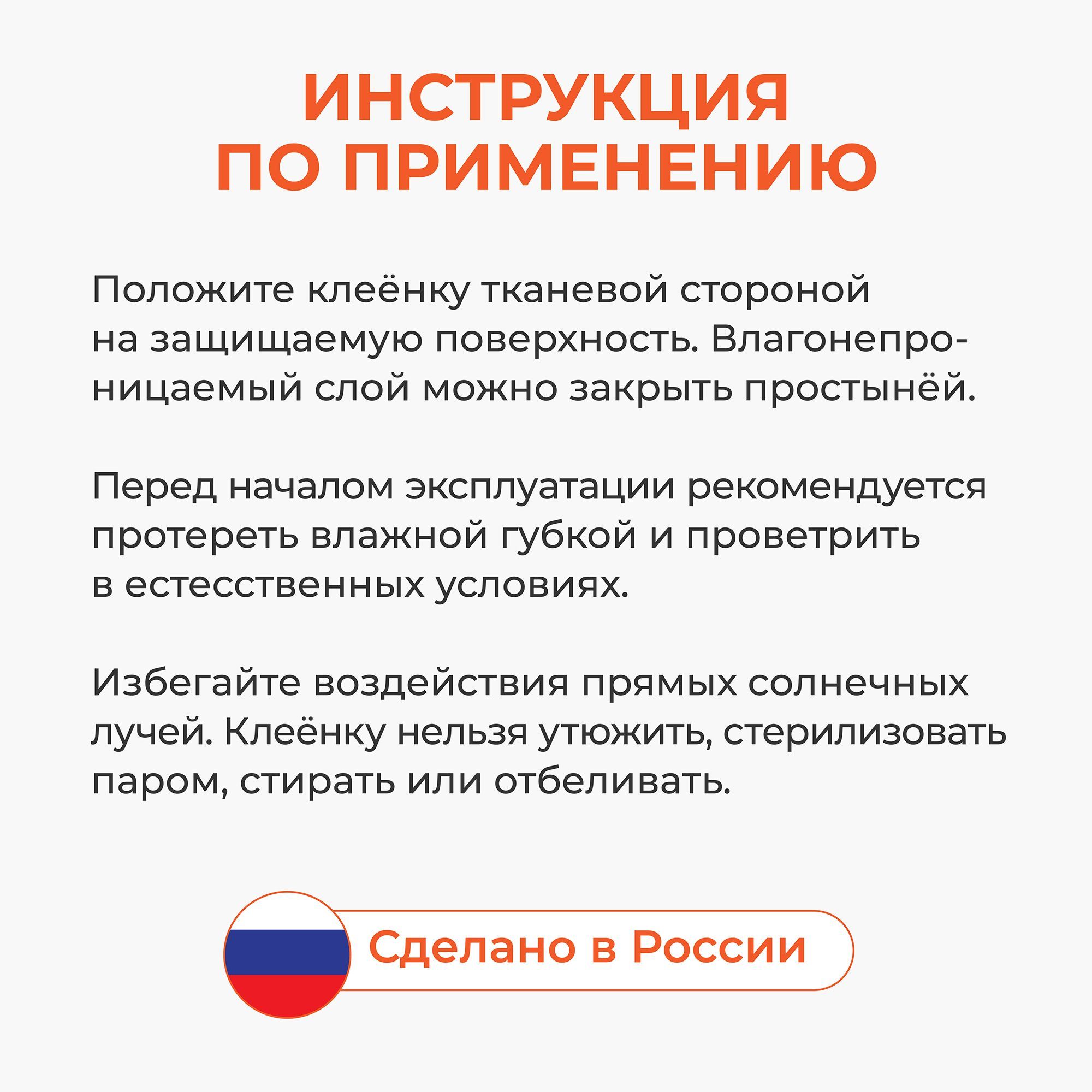 Описание: Клеенка непромокаемая подкладная с ПВХ-покрытием, многоразовая 100х140 см. Клеенка детская. Непромокаемая клеенка применяется в медицинских и бытовых целях. Медицинская клеенка используется при уходе за детьми, защищает матрас от влаги. Благодаря тканевому слою клеёнка не скользит. Обладает высокой теплопроводимостью, быстро приобретает температуру тела, у изделия отсутствует эффект "холодного прикосновения". Экономичная - подходит для многоразового применения. Нанесение ПВХ предохраняет от проникновения влаги и вместе с этим делает клеенку дышащей. Применение: положите клеенку тканевой стороной на защищаемую поверхность, при необходимости сверху накройте простыней. Клеенка Колорит имеет яркий красивый цвет, приятная на ощупь, не склеивается. Подходит для ухода за детьми, лежачими больными, животными. Товар сертифицирован. Сделано в России. Клеенки предложены в шести цветах (белый, синий, желтый, оранжевый, зеленый, розовый) и в двух размерах (100х140 см и 200x140 см).